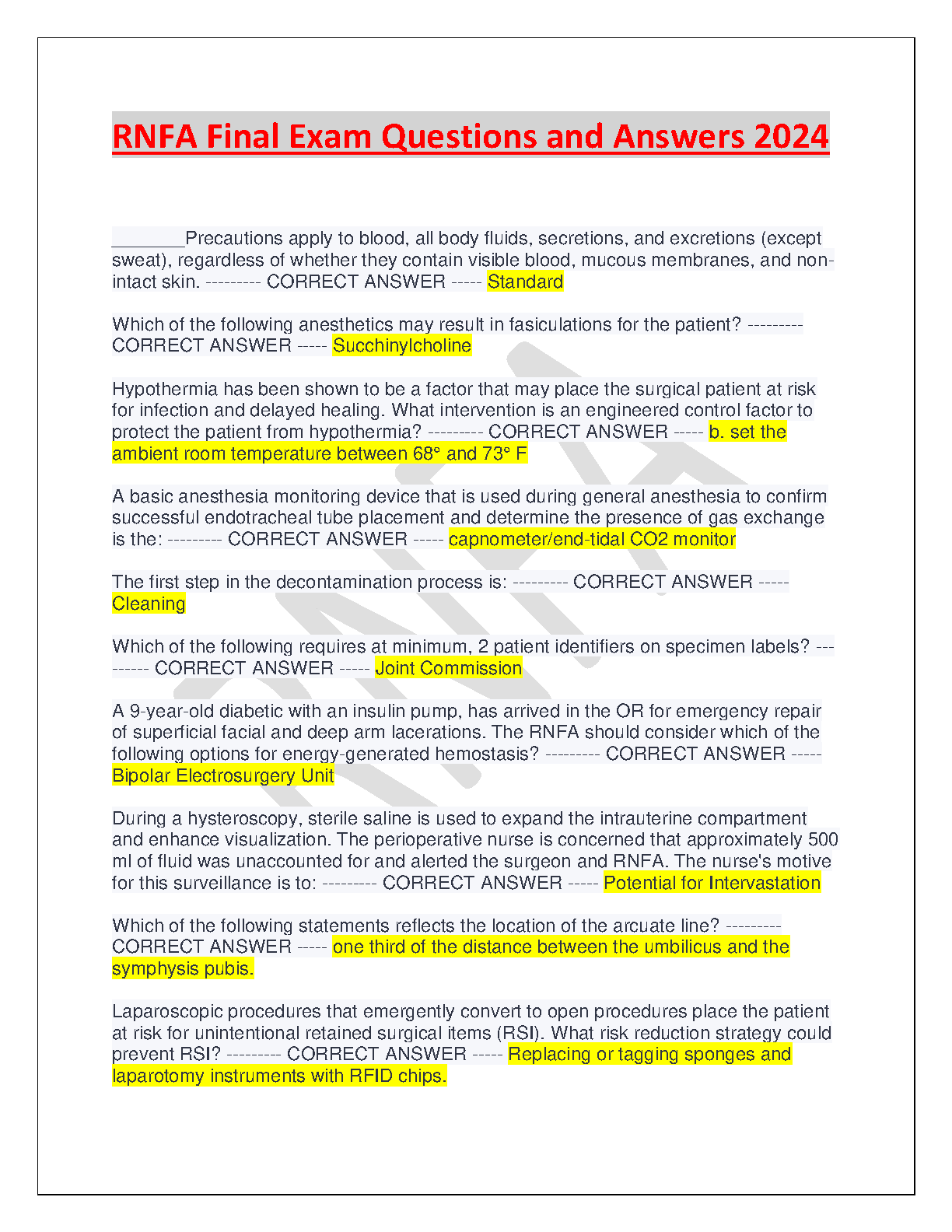 RNFA Final Exam Questions and Answers 2024 by [Author Name]