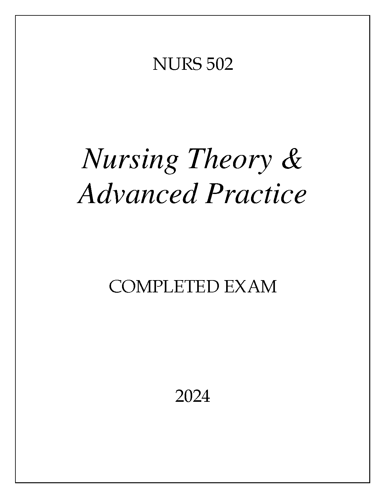 Nurs 502 Nursing Theory and Advanced Practice 2024 Complete Exam - Ace Your Exam on the First Try!