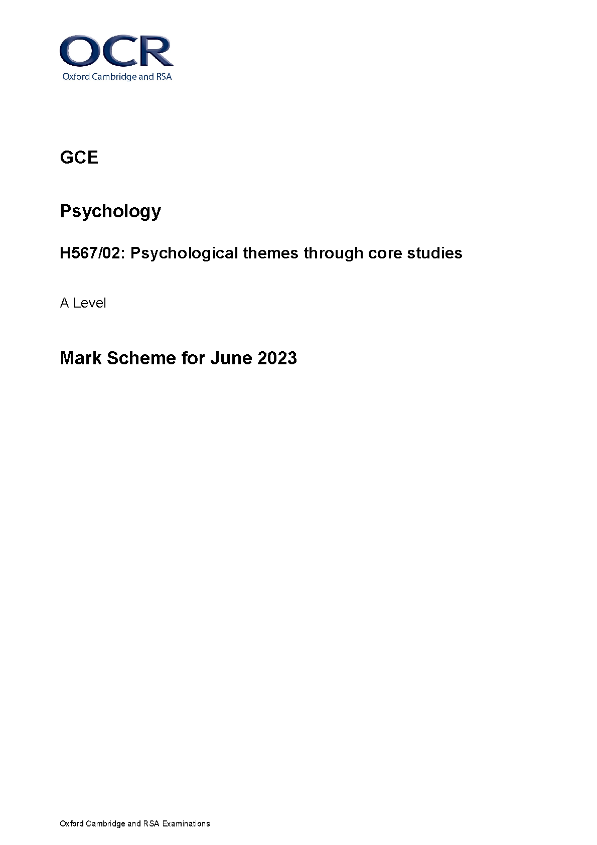 OCR Psychology H567/02: Psychological themes through core studies June 2023 Mark Scheme by OCR