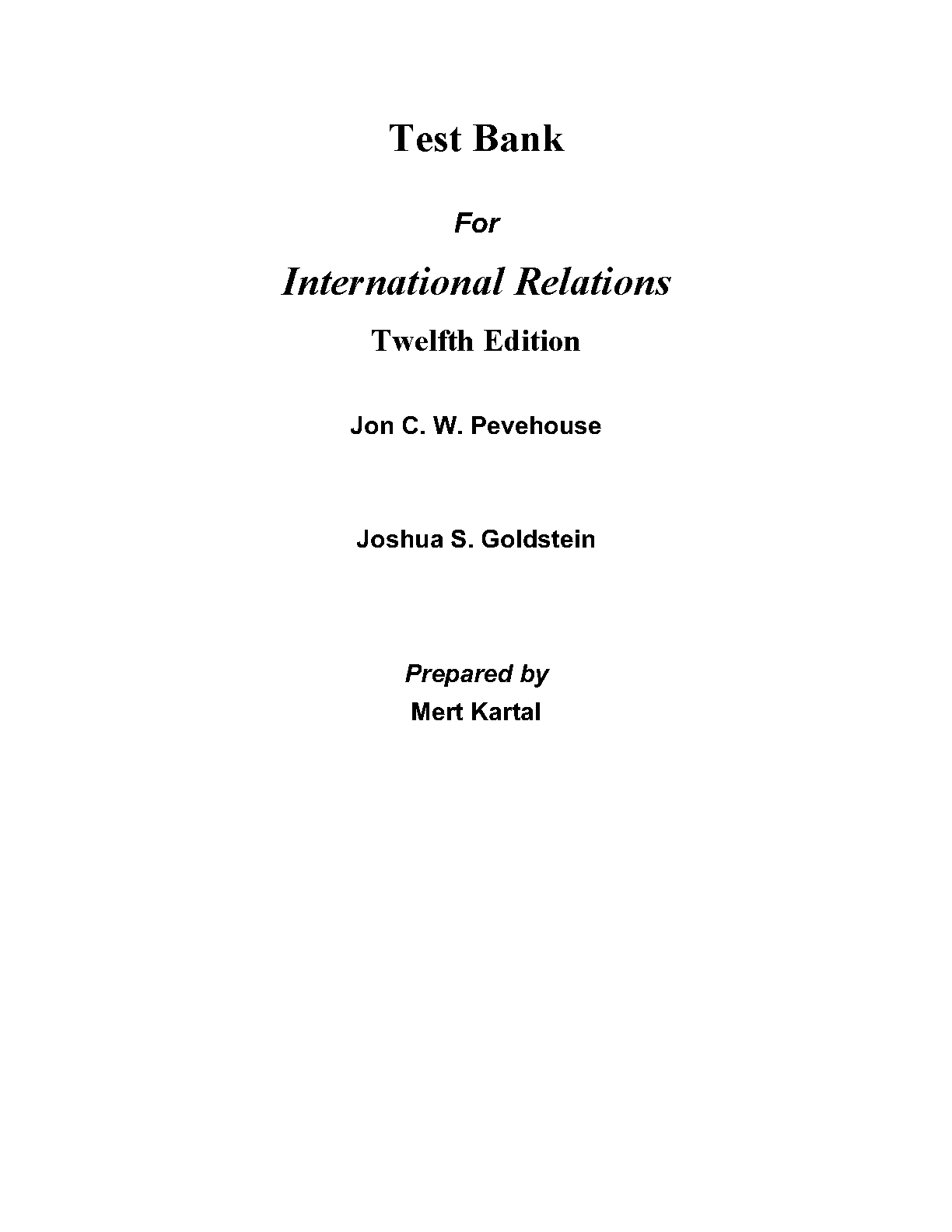 International Relations 12th Edition Test Bank by Jon C.W. Pevehouse and Joshua S. Goldstein