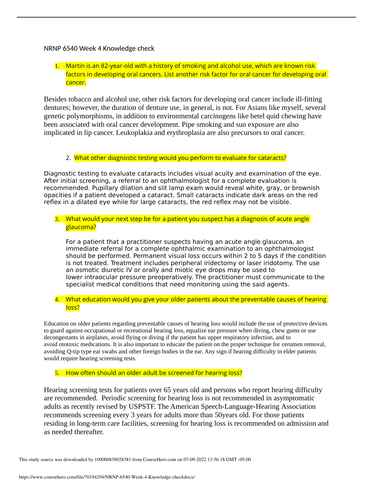 NRNP 6540 Week 4 Knowledge check UPDATED QUESTIONS AND ANSWERS 100% GUARANTEED PASS. DOWNLOAD on www.hackedexams.com INSTANTLY.