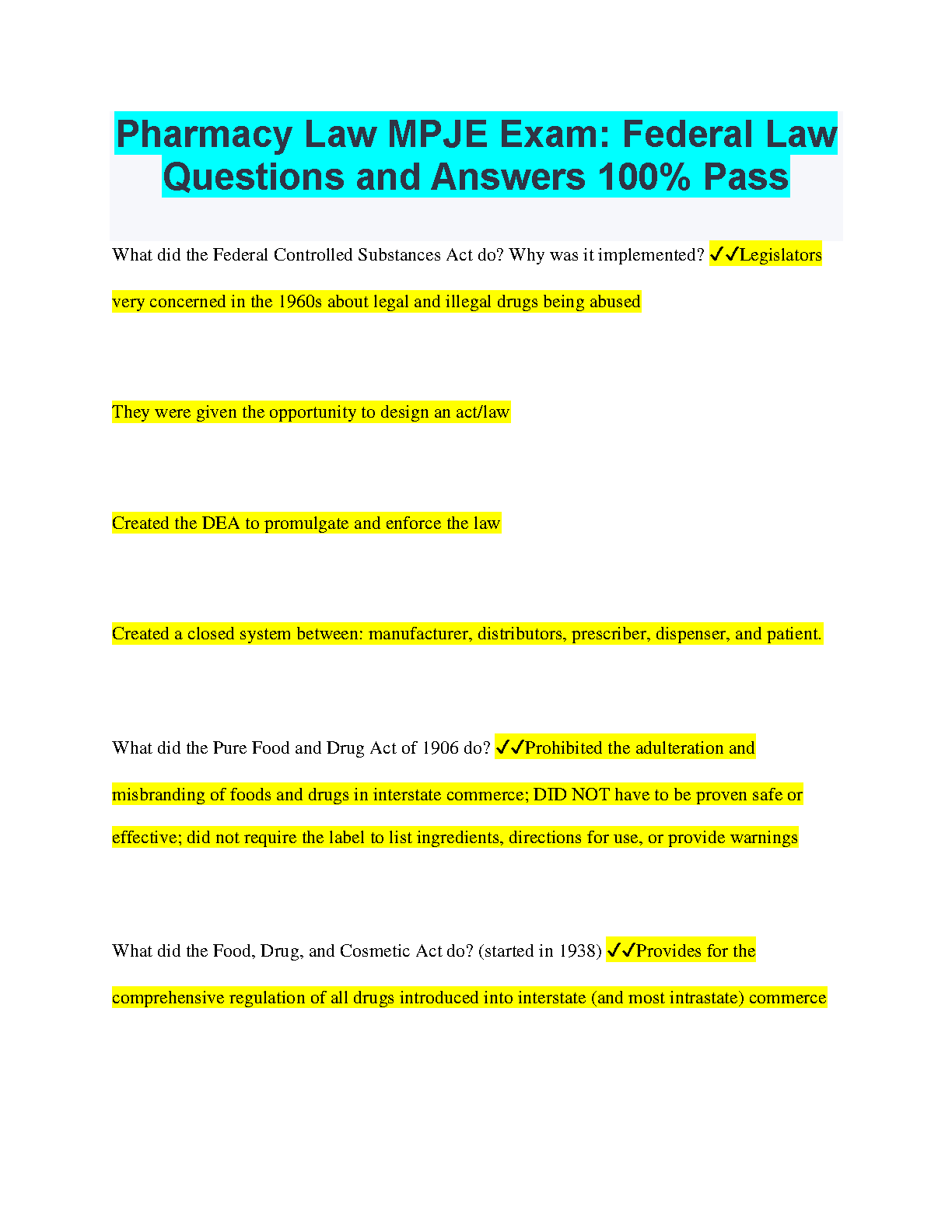 Pharmacy Law MPJE Exam: Federal Law Questions and Answers 100% Pass
