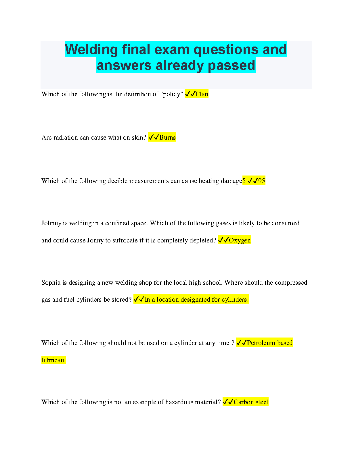 Welding Final Exam Questions and Answers - Pass Your Exam on the First Attempt