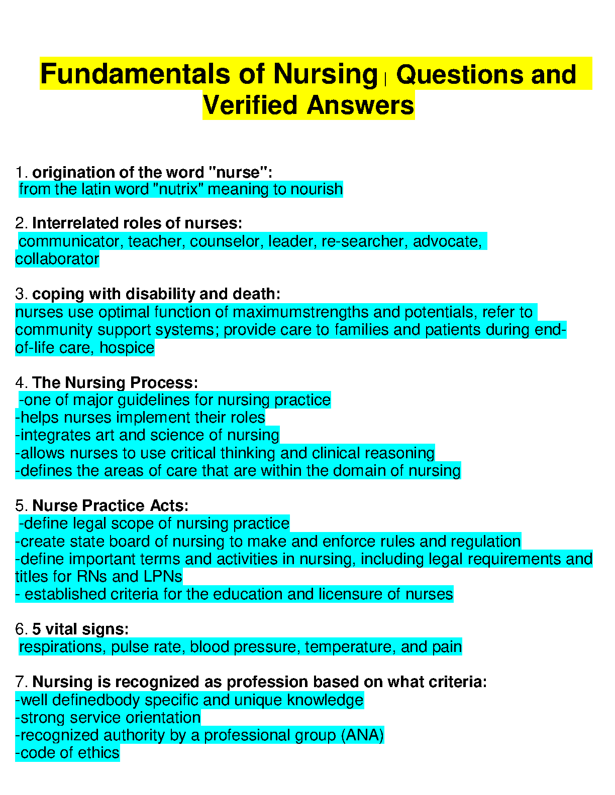Gain a comprehensive understanding of nursing fundamentals with this resource, carefully curated to help students ace their exams on the first attempt. Explore key concepts, definitions, and principles, and practice with verified answers to solidify your knowledge. This is your trusted companion for mastering nursing fundamentals.