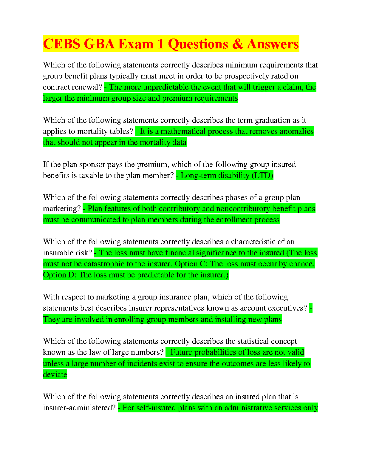 CEBS GBA Exam 1 Questions & Answers by [Complete Author Name] - Pass Your Exam on the First Attempt