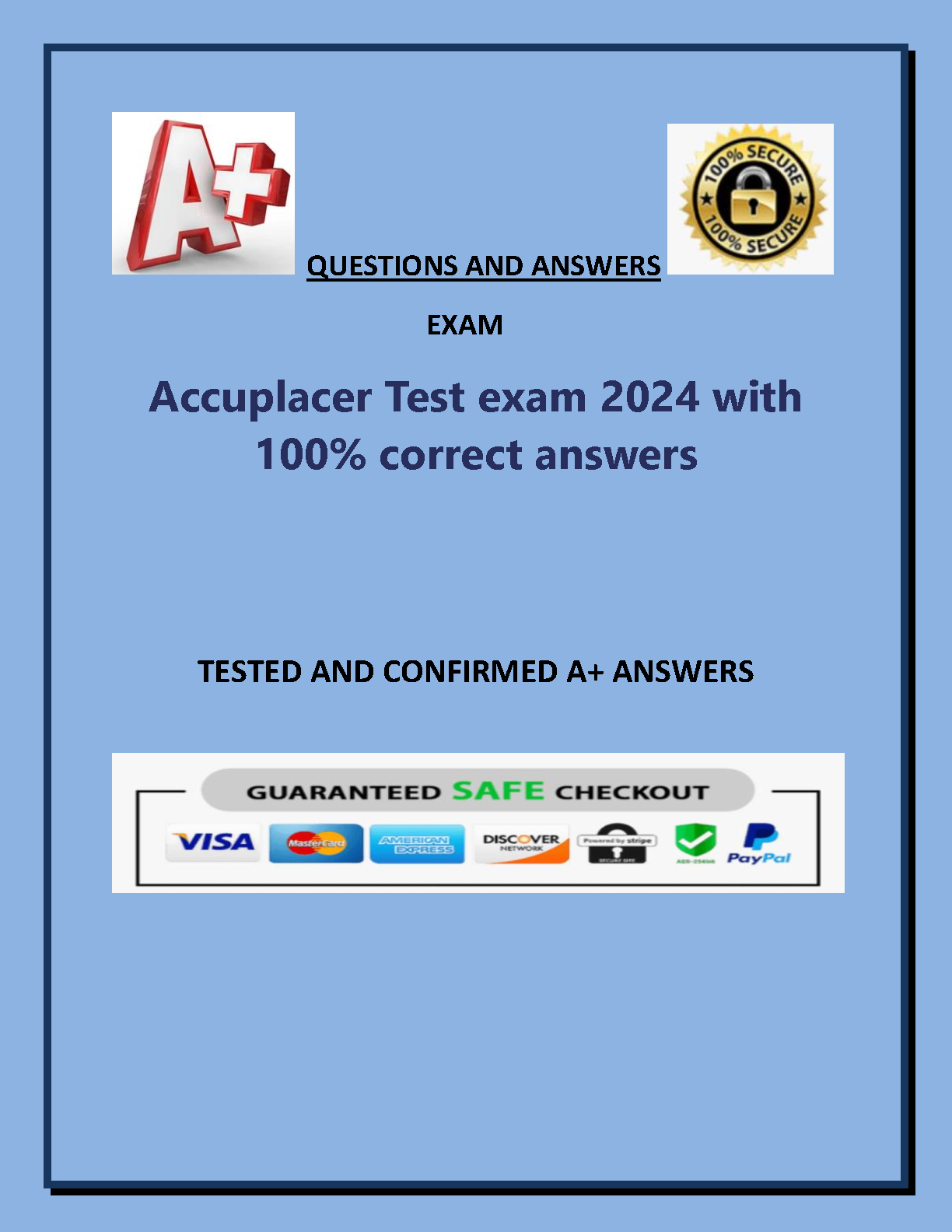 Accuplacer Test Exam 2024 with 100% Correct Answers: Ace Your Exams on the First Try