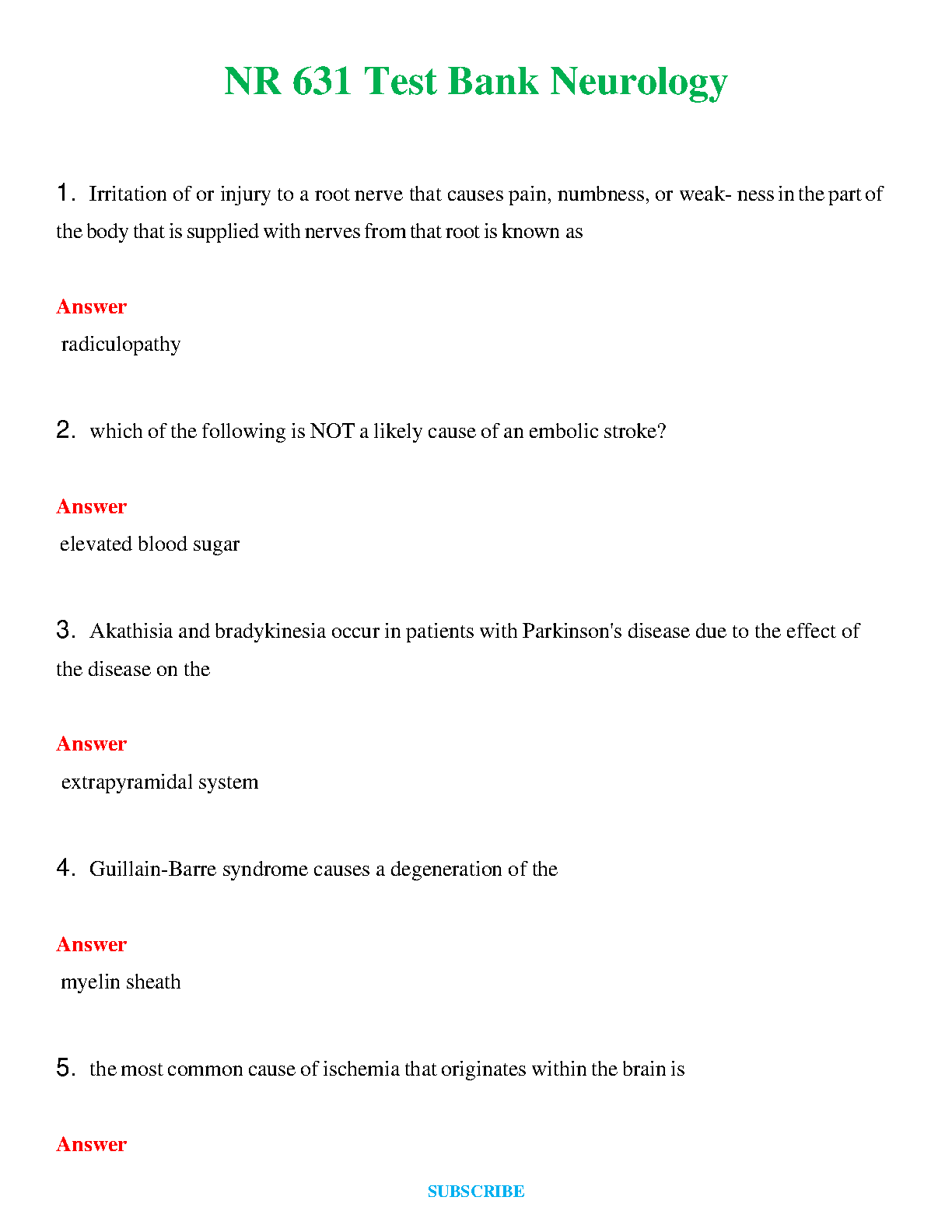 Prepare for success in your NR 631 Neurology course with our updated test bank. This comprehensive resource provides practice questions, answers, and rationales, covering all key concepts and helping you master the subject matter. Achieve your learning goals and confidently tackle your exams.