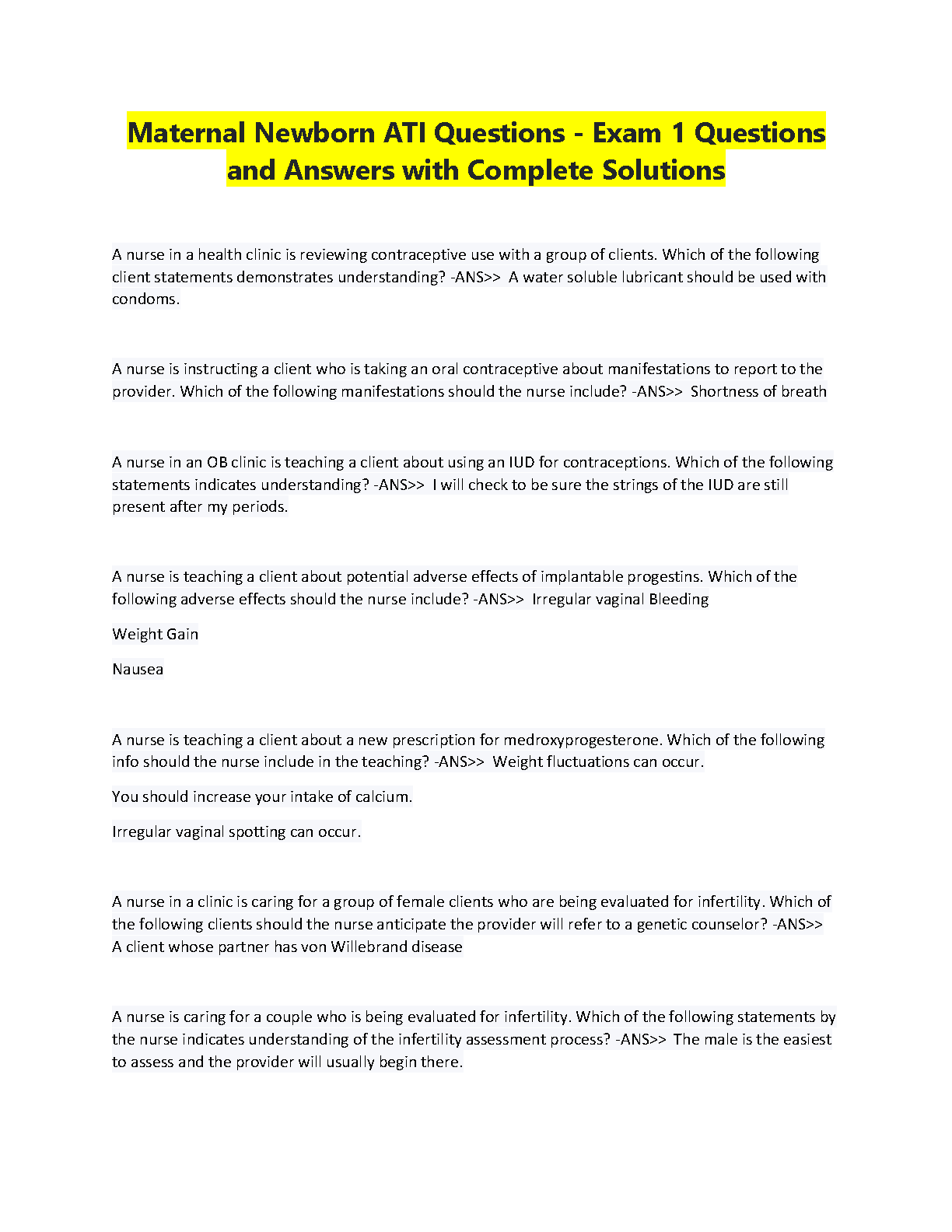 Ace your Maternal Newborn ATI exam with this comprehensive study guide. This resource provides you with real-world scenarios, detailed explanations, and complete solutions. With 100% passing assurance, you can be confident in your preparation for your exam and pass on the first attempt, avoid unnecessary resits and stay on track with your studies.