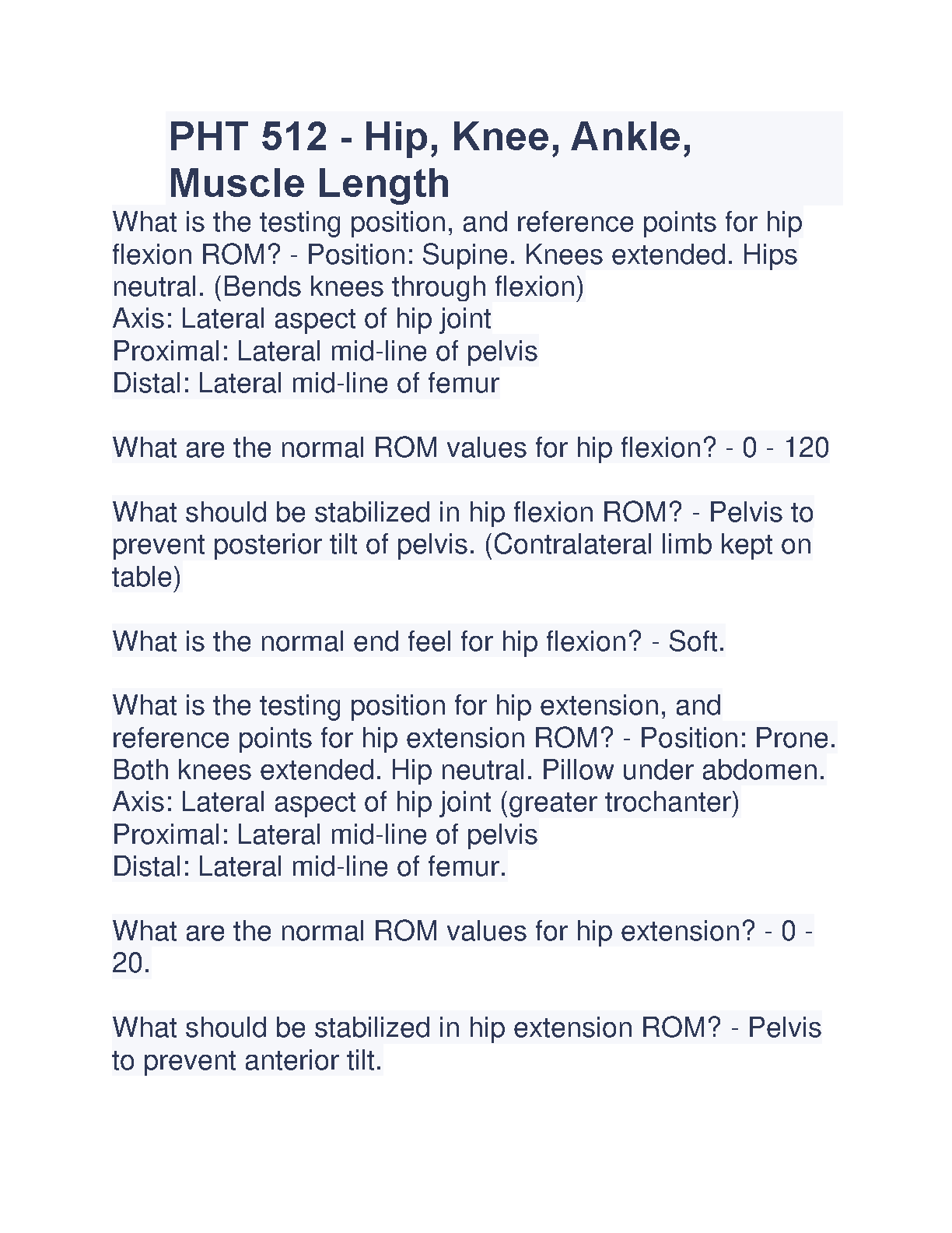 PHT 512 - Hip, Knee, Ankle, Muscle Length - 2024/2025 Edition - Pass Exams on the First Attempt - Avoid Resits