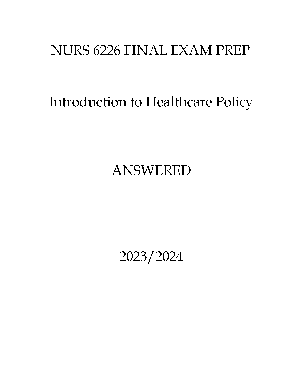 NURS 6226 Final Exam Prep: Introduction to Healthcare Policy - 2023/2024 - Answered
