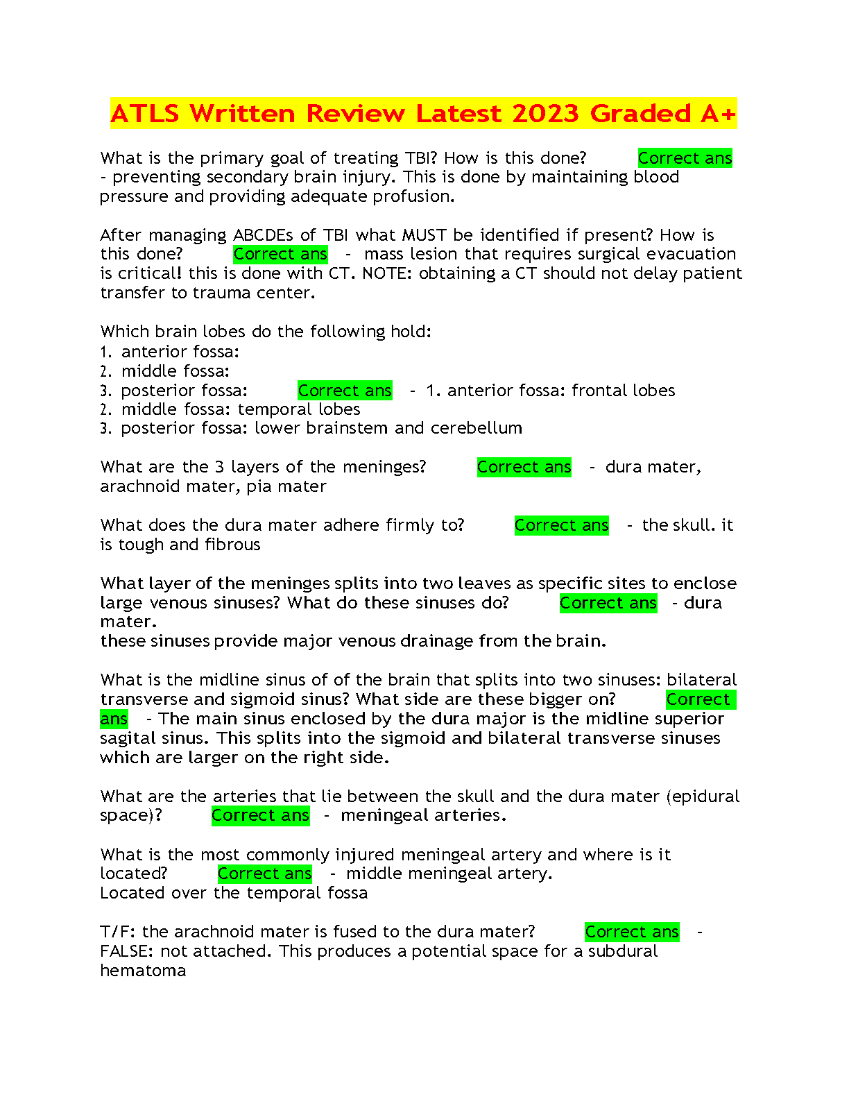 ATLS Written Review Latest 2023 Graded A+ by **Unknown Authors**