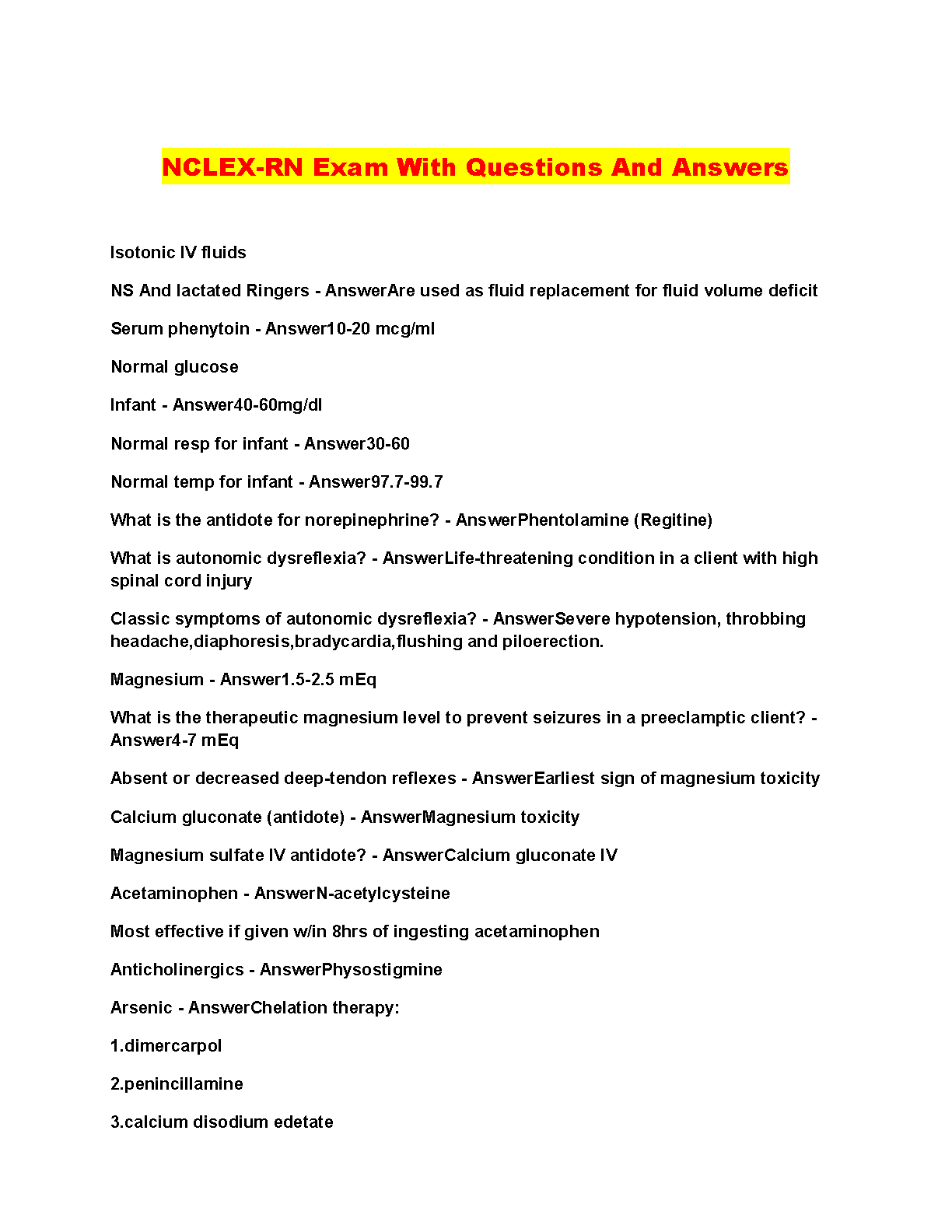 This comprehensive NCLEX-RN Exam Questions and Answers resource provides a thorough review of critical nursing concepts, helping you ace your exam on the first attempt and avoid resits. This study guide features up-to-date questions and answers in a clear and concise format, making it ideal for busy nursing students.