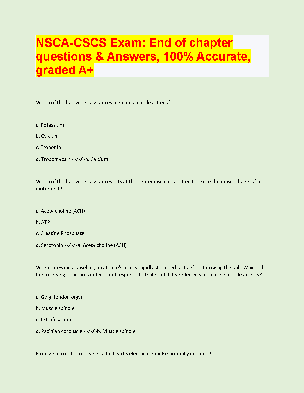 NSCA-CSCS Exam: End of chapter questions & Answers, 100% Accurate, graded A