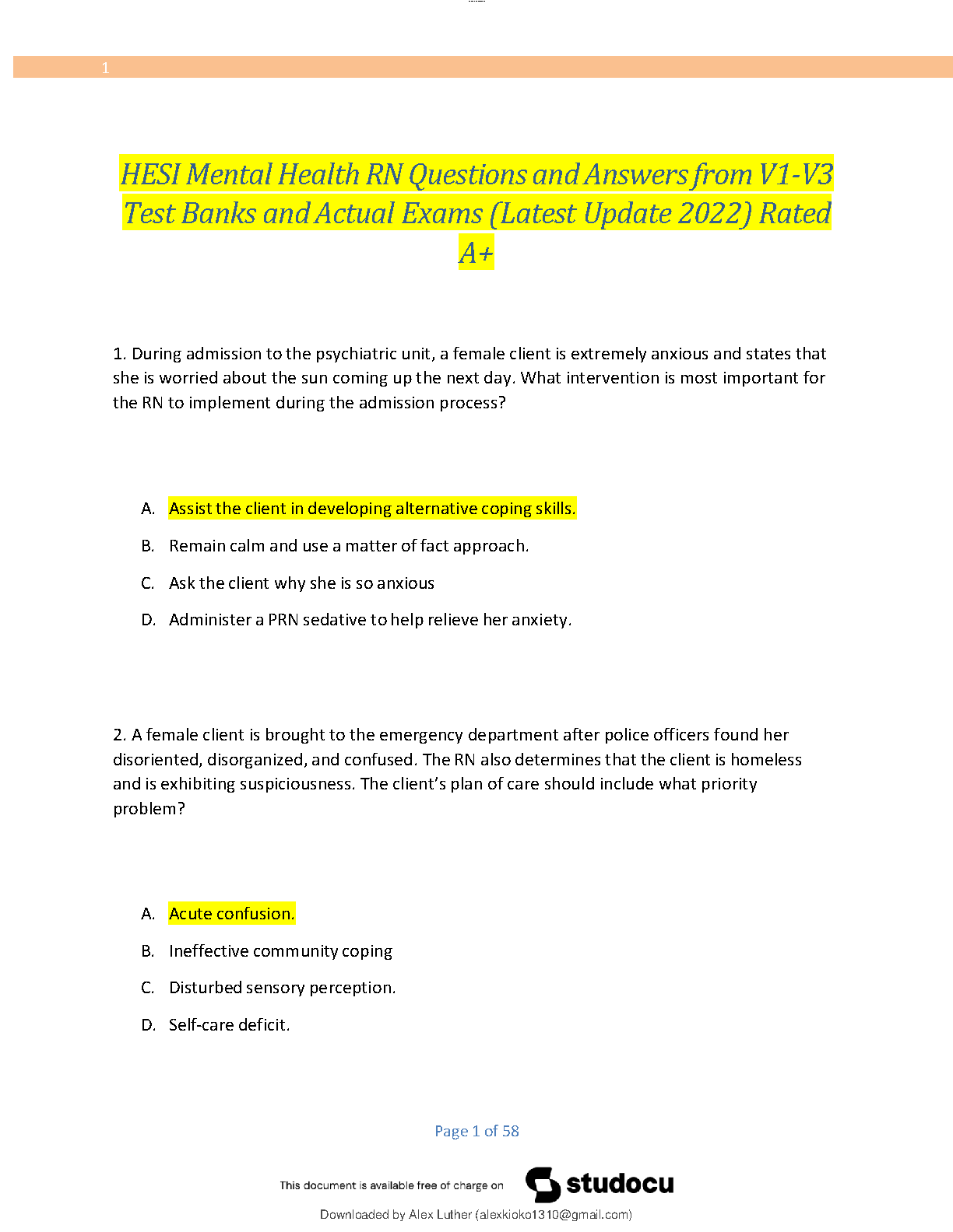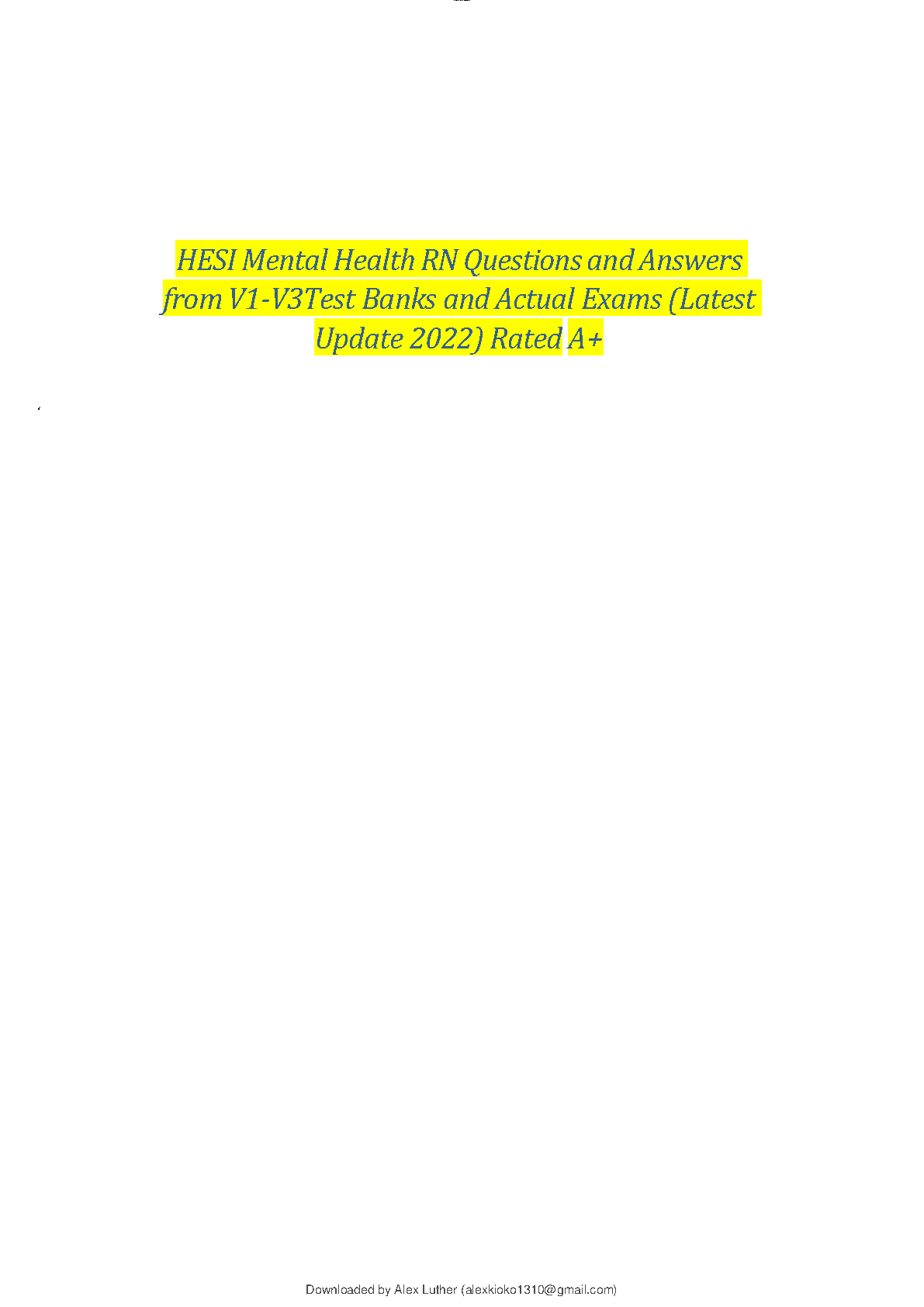 HESI Mental Health RN Questions and Answers: Ace Your Exam with V1-V3 Test Banks & Actual Exams (Latest Edition 2024/2025)