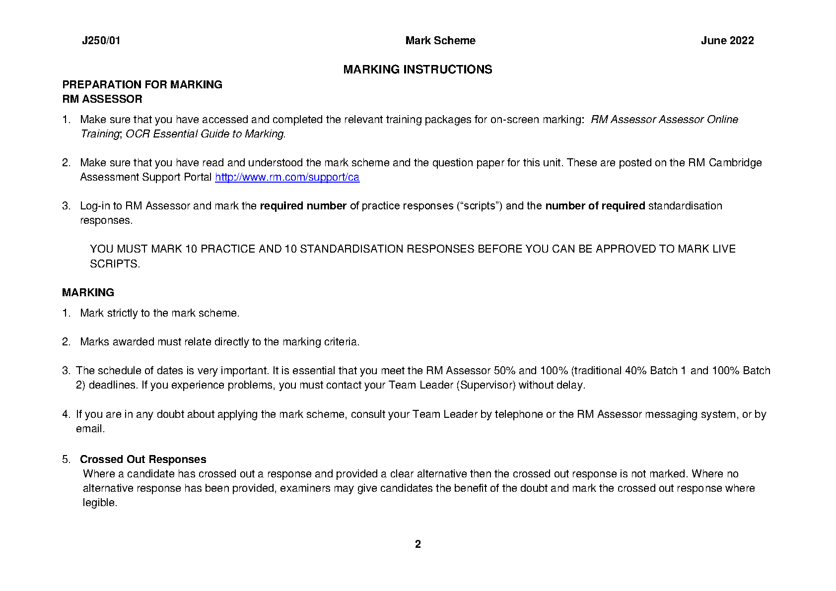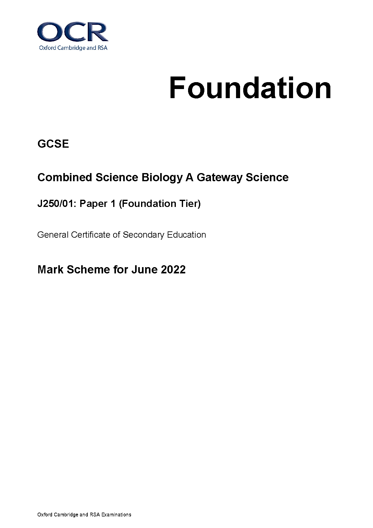 OCR GCSE Combined Science Biology A Gateway Science J250/01 Paper 1 (Foundation Tier) Mark Scheme June 2022