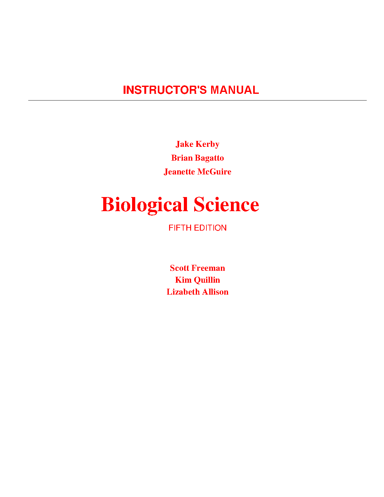 Instructor's Manual for Biological Science Fifth Edition by Jake Kerby, Brian Bagatto, Jeanette McGuire, Scott Freeman, Kim Quillin, Lizabeth Allison