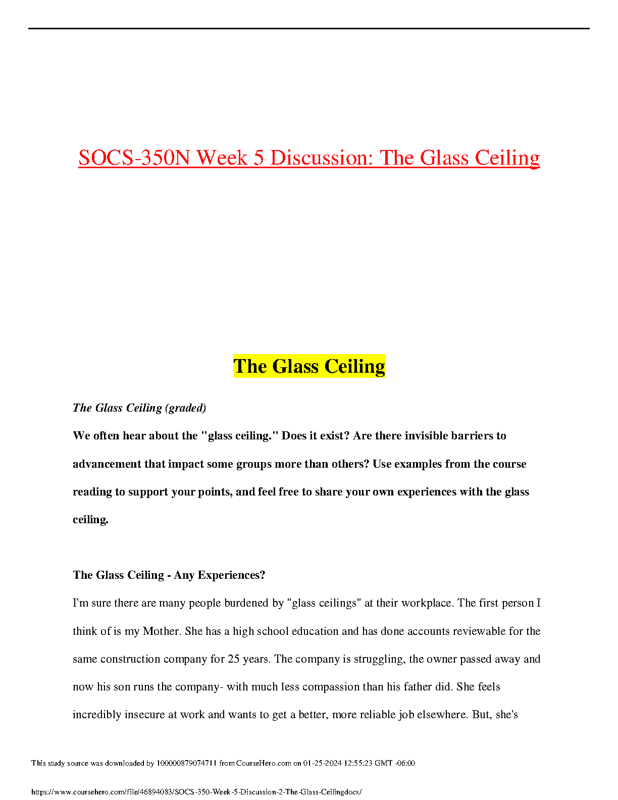 SOCS-350N Week 5 Discussion: The Glass Ceiling