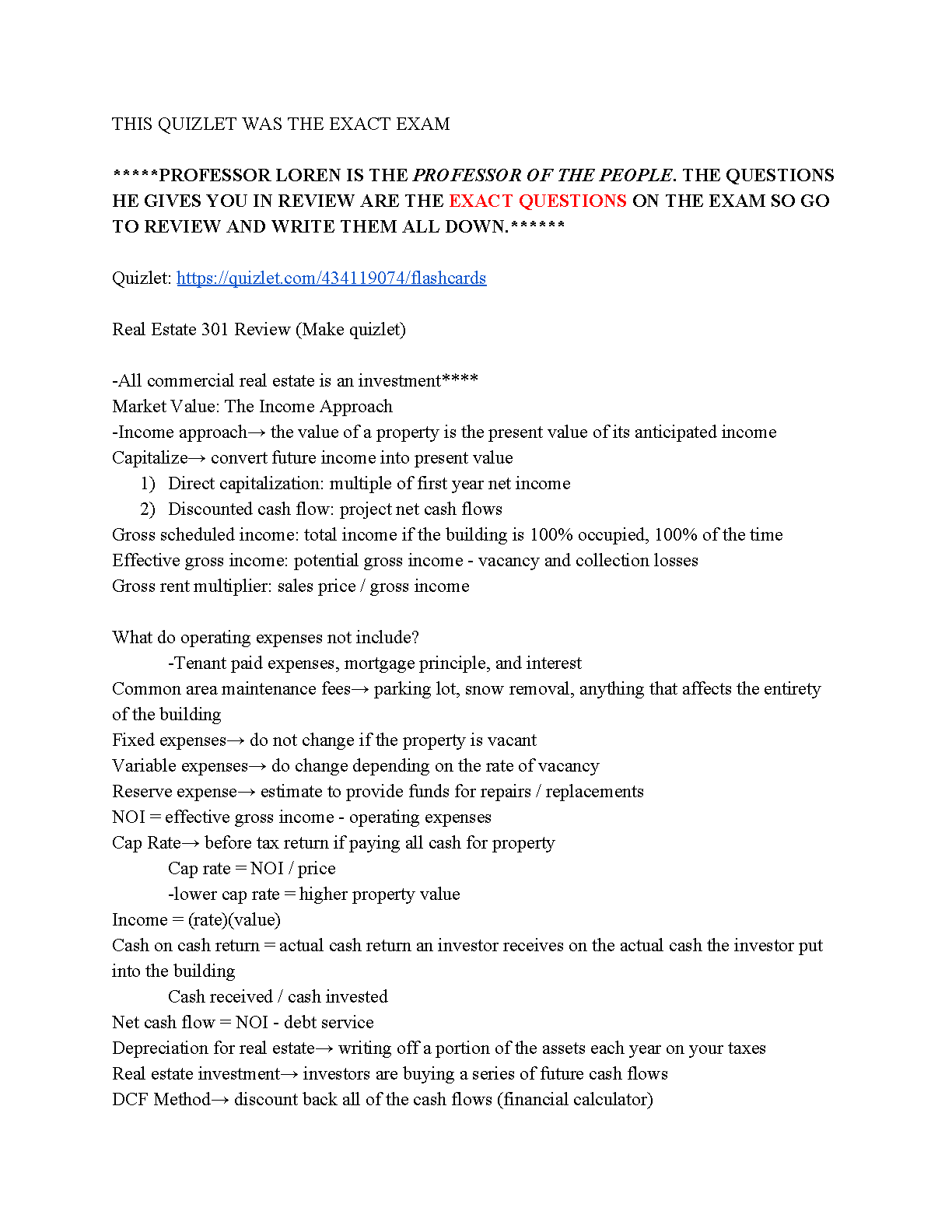 This study guide covers everything you need to know about real estate, from the income approach to the discounted cash flow method. It's perfect for students who want to pass their exam on the first attempt.