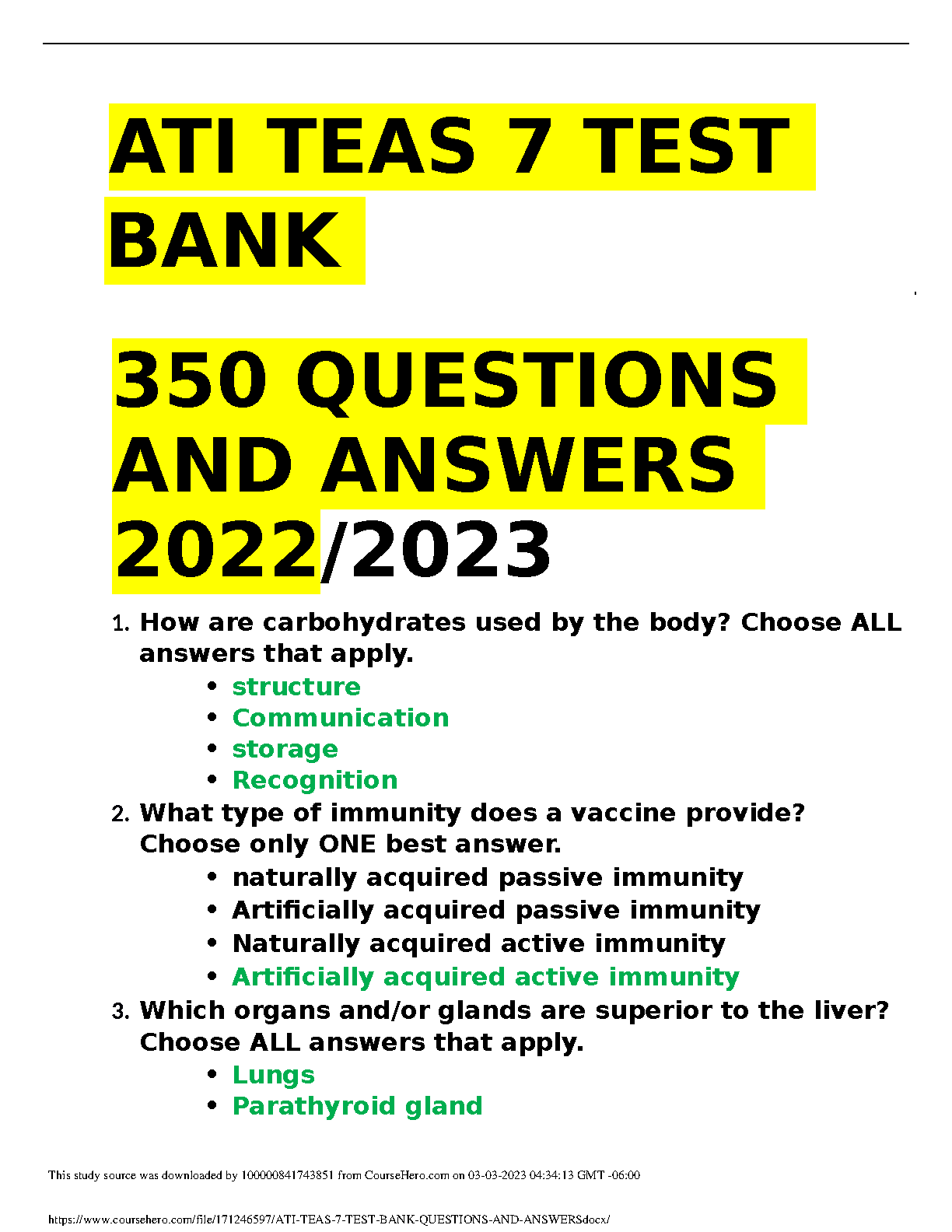 ATI TEAS 7 Test Bank Questions and Answers 2022/2023 - Ace Your Exam On the First Attempt