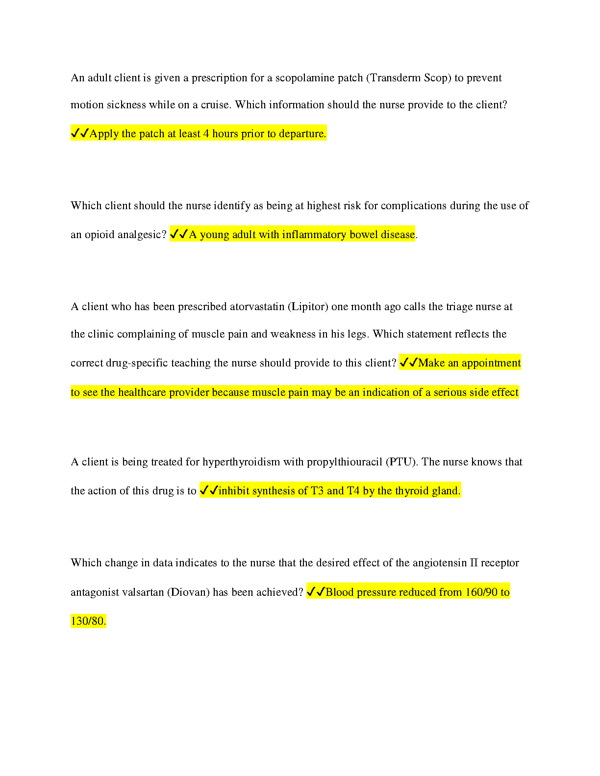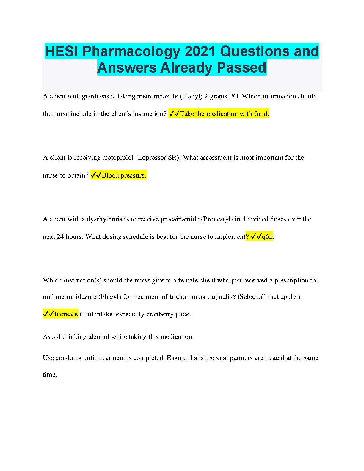 HESI Pharmacology 2021 Questions and Answers Already Passed