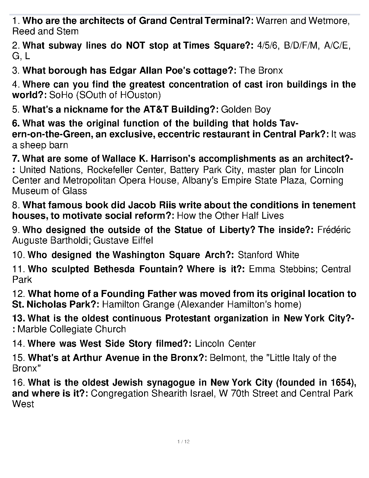This resource contains a comprehensive collection of questions and answers for the Improved NYC Tour Guide Exam, designed to help you ace your exam and avoid resits. The solutions are thoroughly tested and confirmed to be accurate, providing you with the confidence you need to succeed.