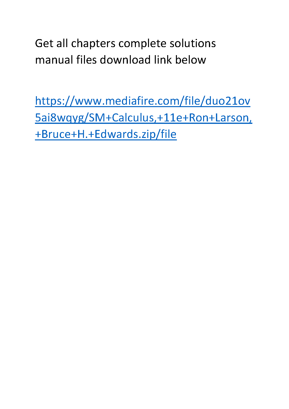 Download the complete solutions manual for Calculus, 11th Edition by Ron Larson and Bruce Edwards and ace your exams. This comprehensive manual provides step-by-step solutions to all the exercises in the textbook, helping you grasp the concepts and prepare effectively.