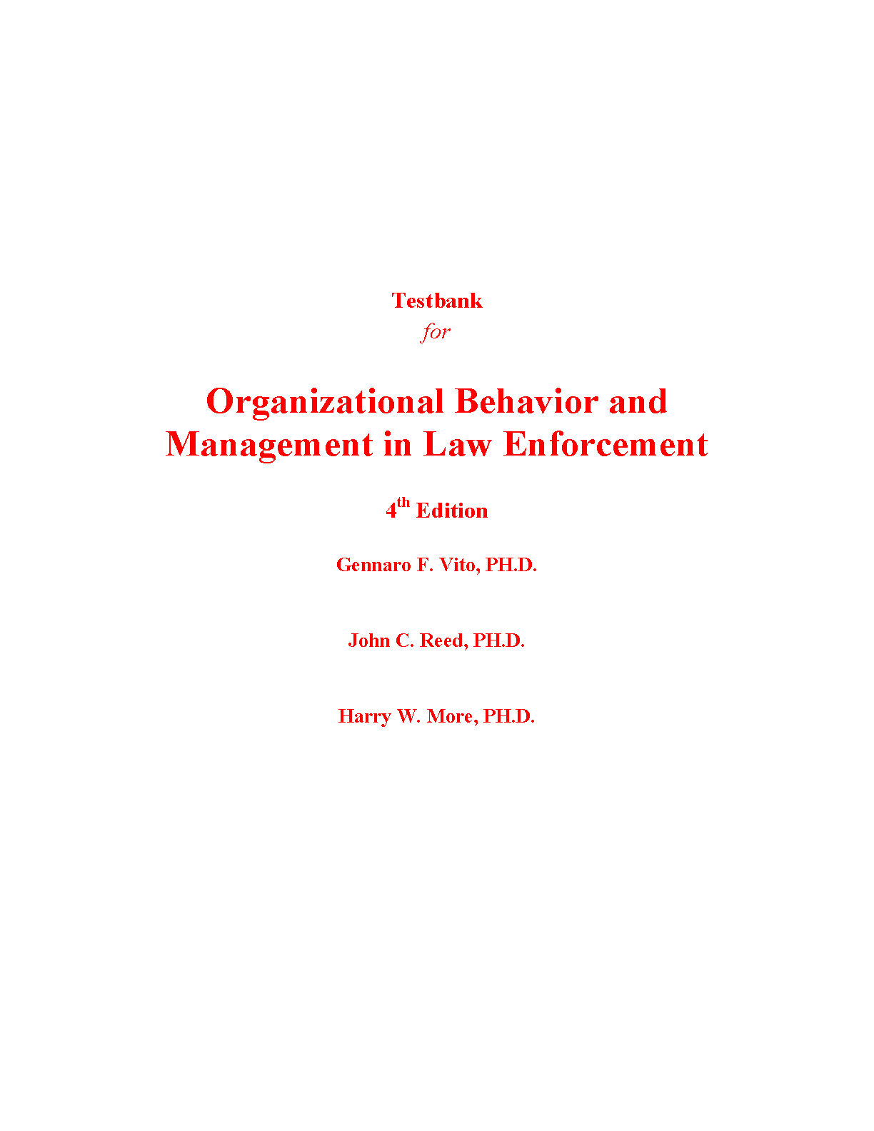 Organizational Behavior and Management in Law Enforcement 4th Edition Test Bank by Gennaro F. Vito, John C. Reed, Harry W. More