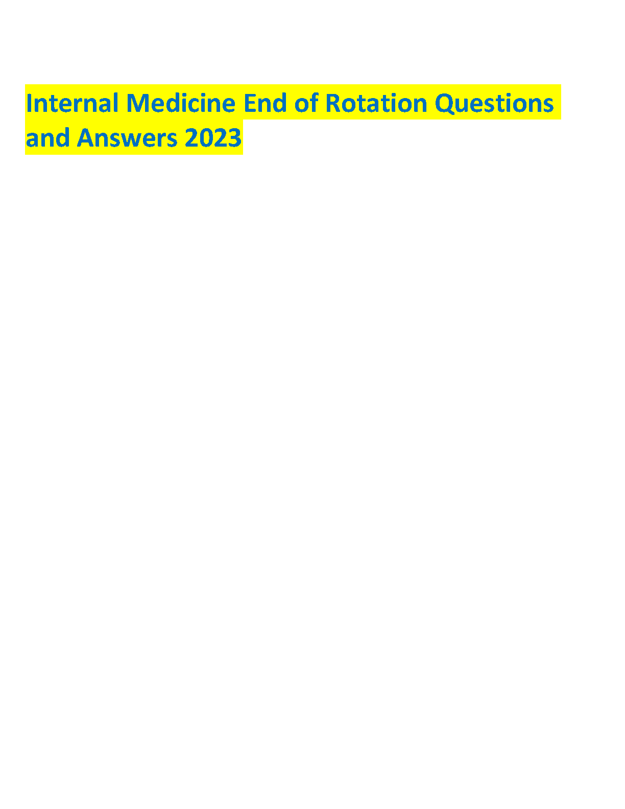Internal Medicine End of Rotation Questions and Answers 2023 for Students Success