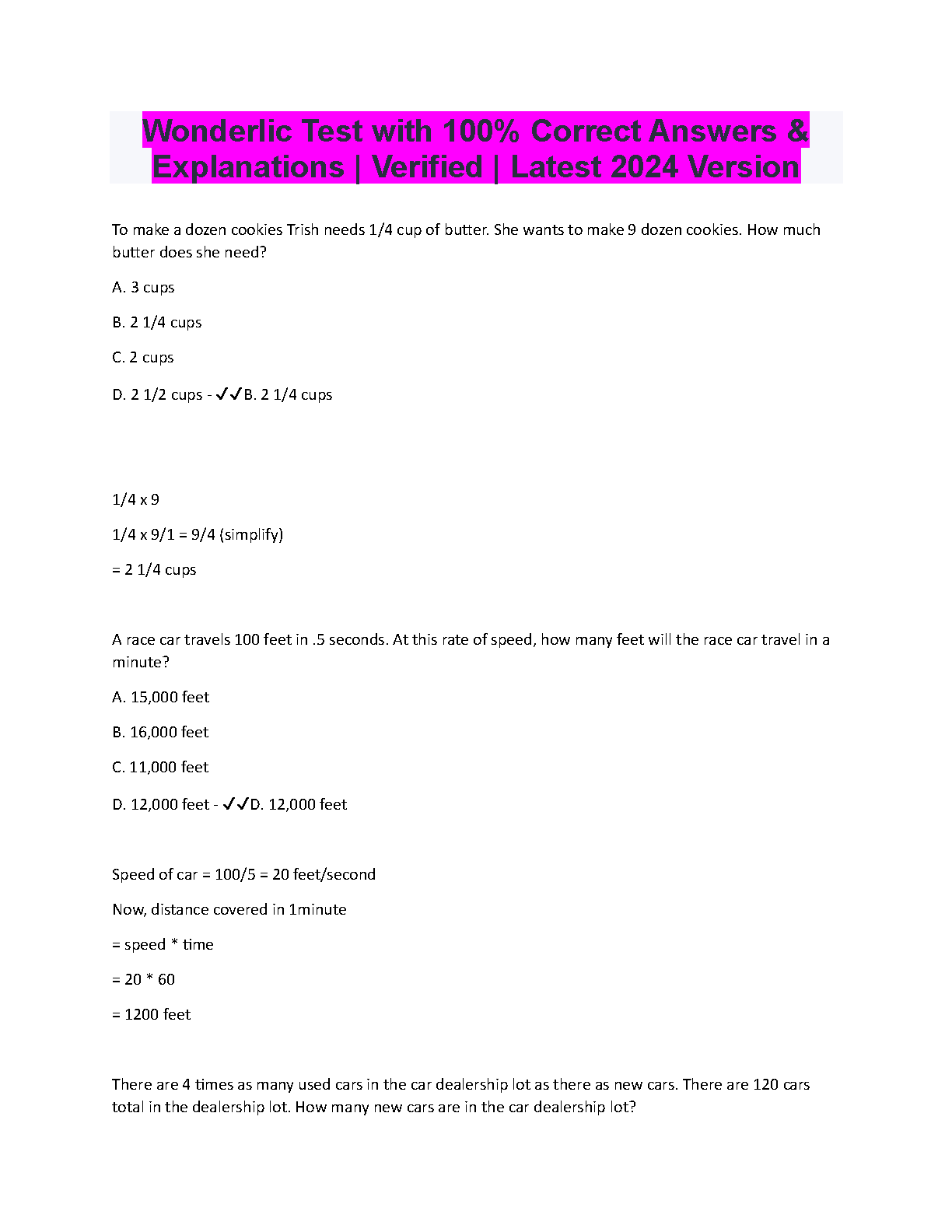 Wonderlic Test with 100% Correct Answers & Explanations | Verified | Latest 2024 Version