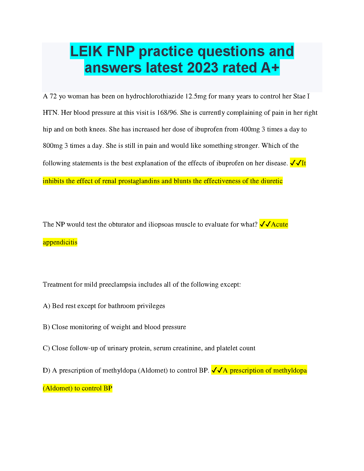 LEIK FNP practice questions and answers latest 2023 rated A