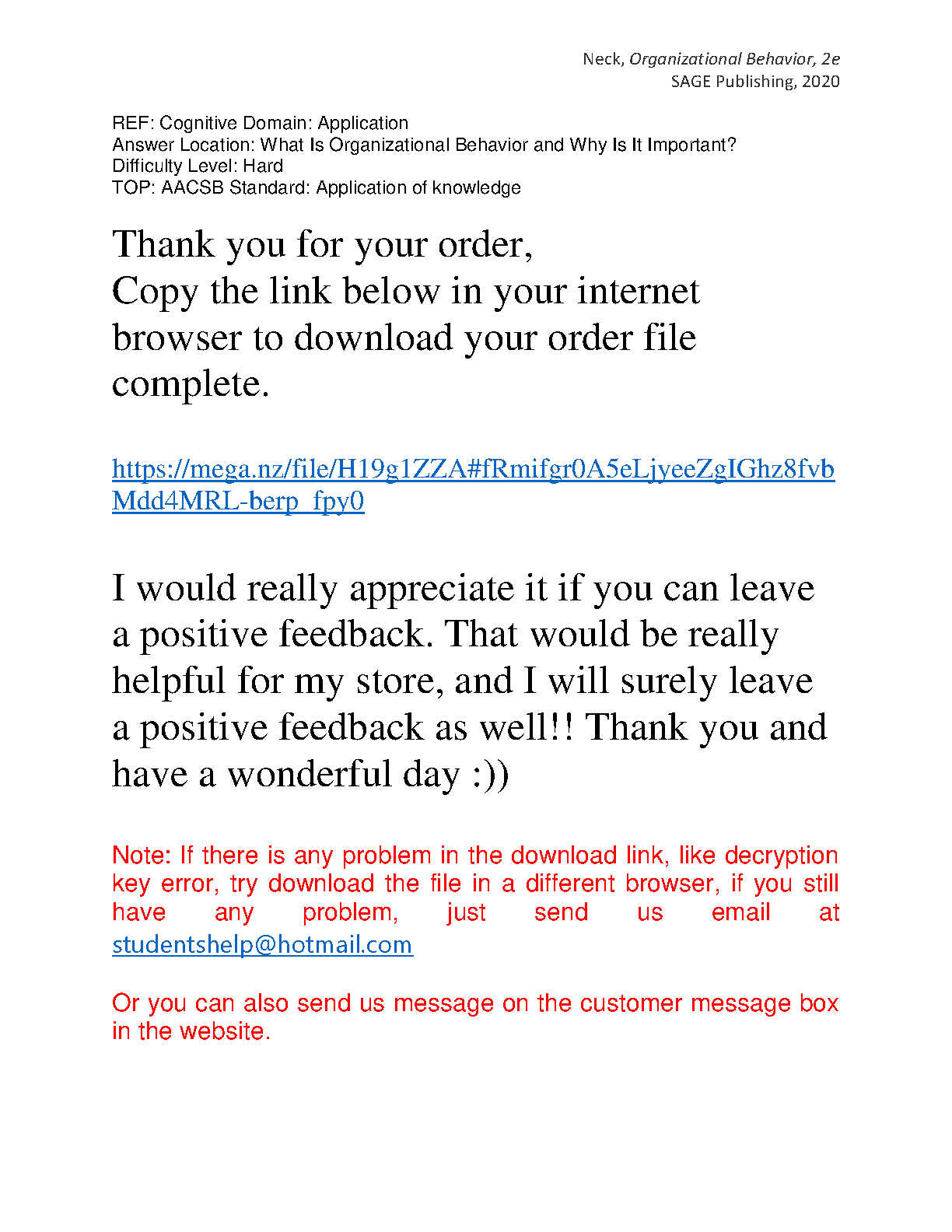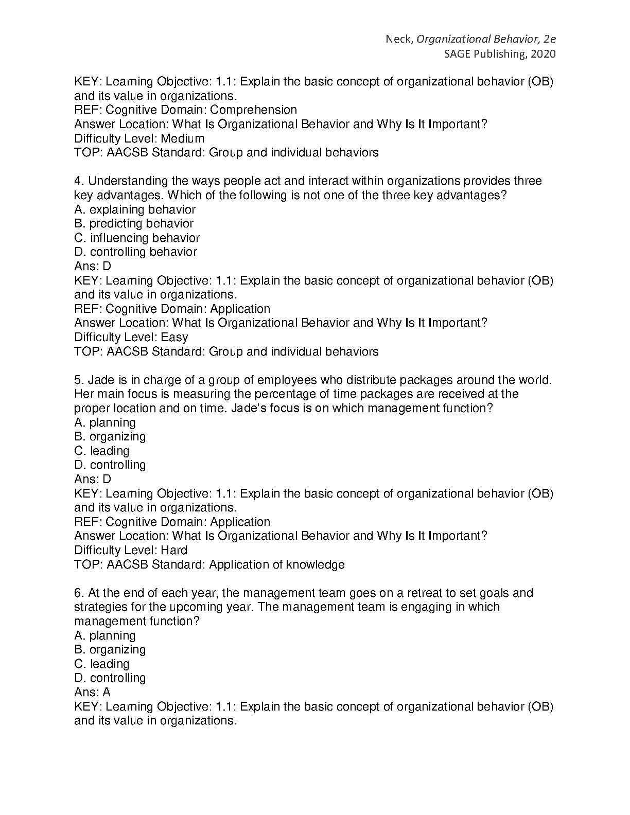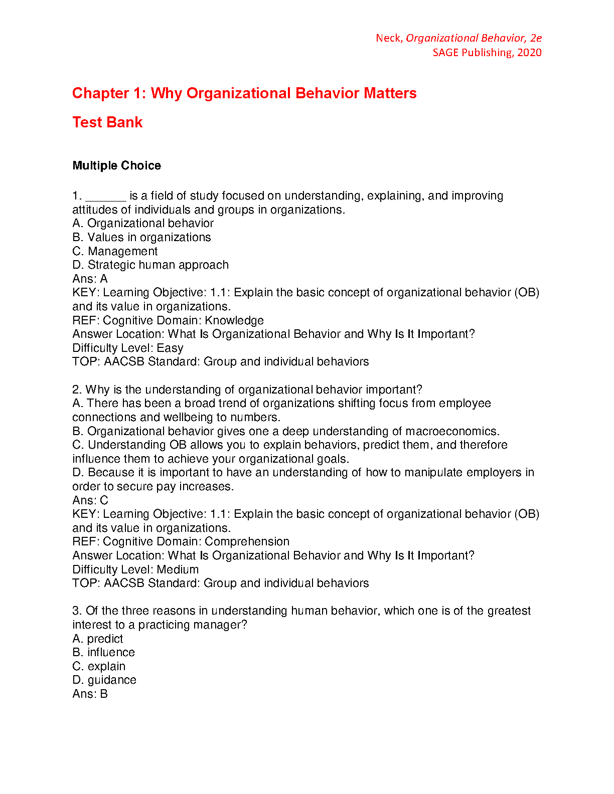 This comprehensive Test Bank for Neck's Organizational Behavior, 2nd Edition, provides instructors with a valuable resource to assess student understanding of key concepts in the field.
