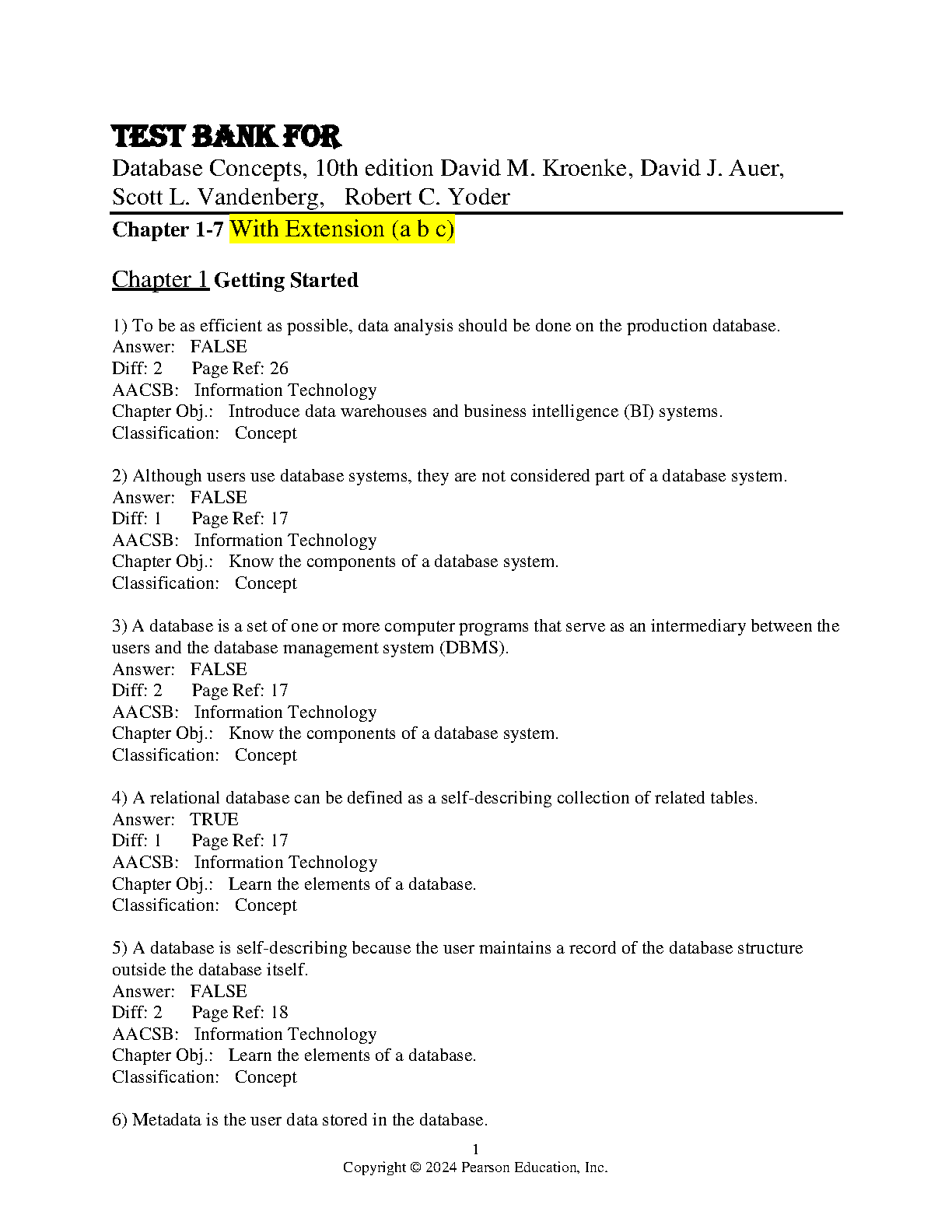 Database Concepts, 10th Edition by David M. Kroenke, Scott L. Vandenberg, Robert C. Yoder: Test Bank
