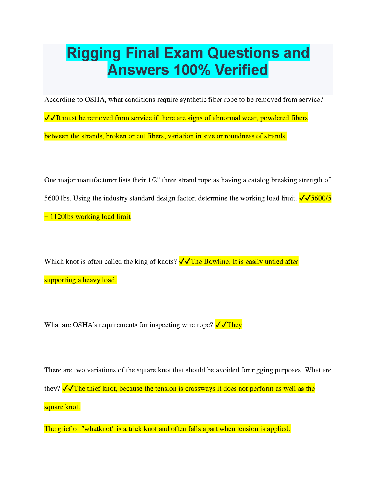 Ace your Rigging final exam with this comprehensive set of practice questions and verified answers. Covering key concepts and OSHA requirements, this resource helps you understand the fundamentals of rigging and perform confidently on your exam.
