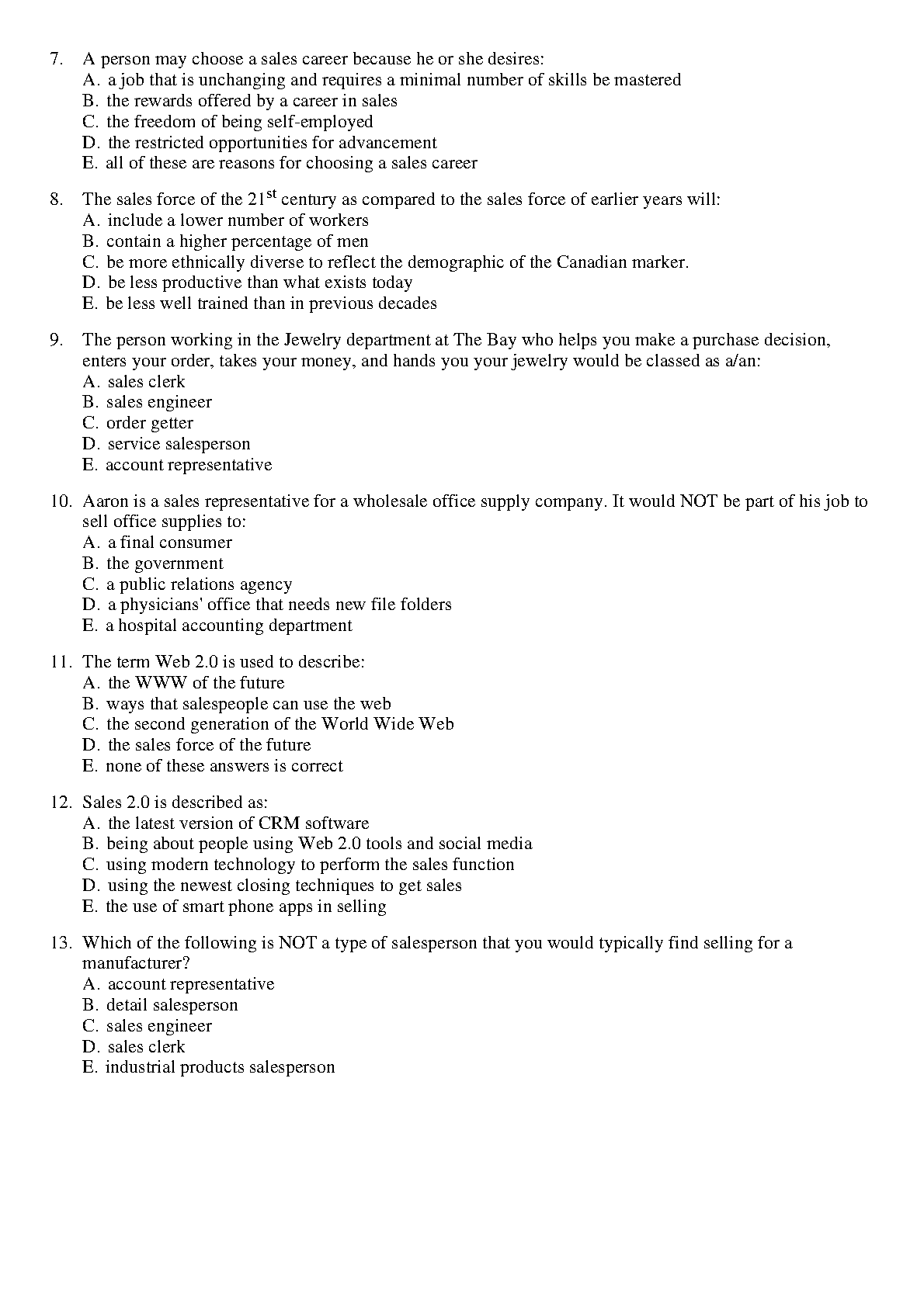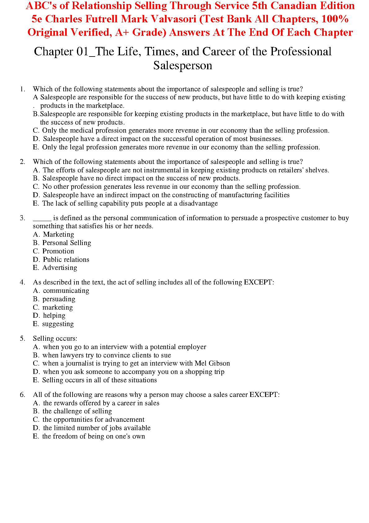 ABC's of Relationship Selling Through Service 5th Canadian Edition - Charles Futrell, Mark Valvasori (Test Bank All Chapters, 100% Original Verified, A+ Grade) Answers At The End Of Each Chapter
