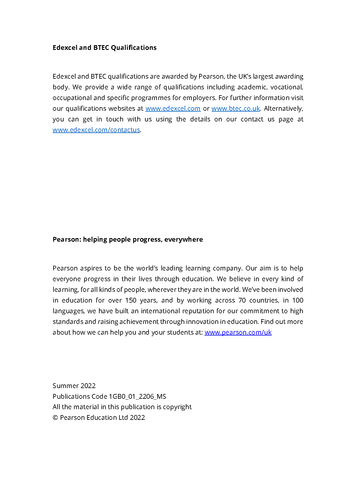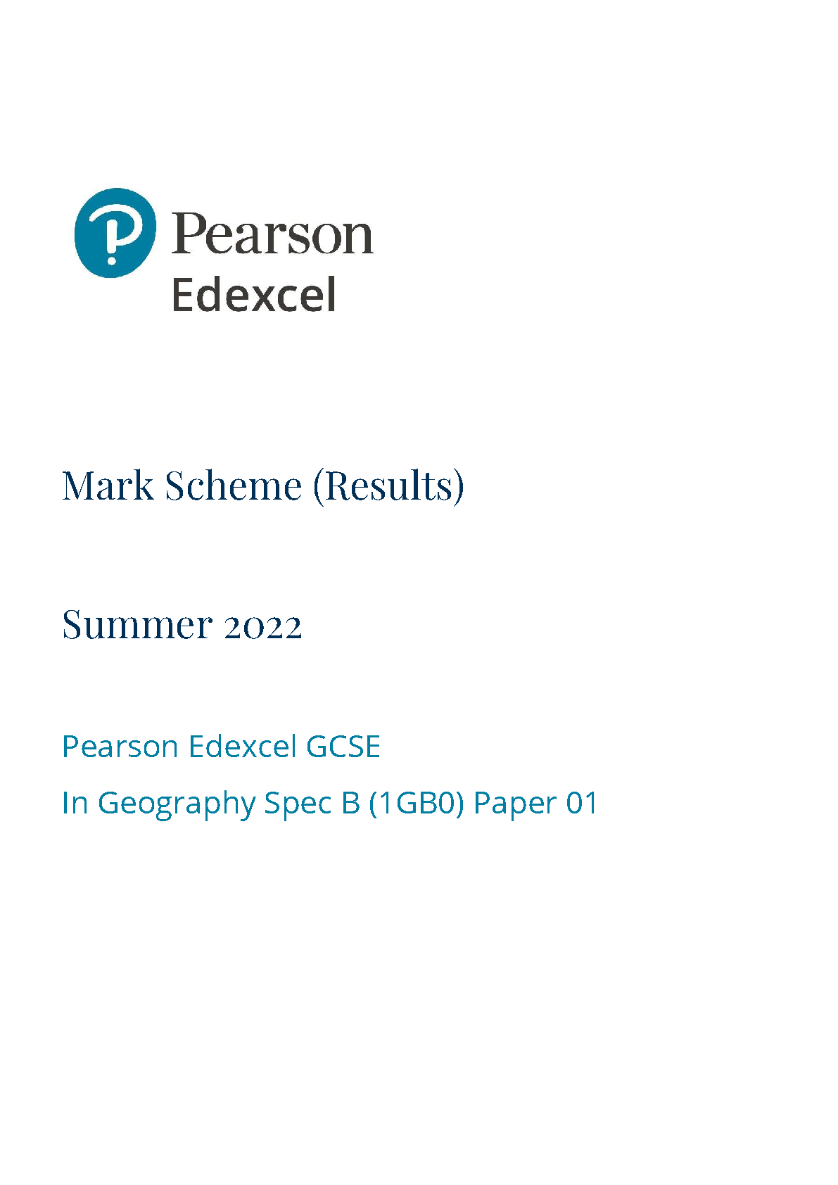 Pearson Edexcel GCSE in Geography Spec B (1GB0) Paper 01 Mark Scheme (Results) - Summer 2022