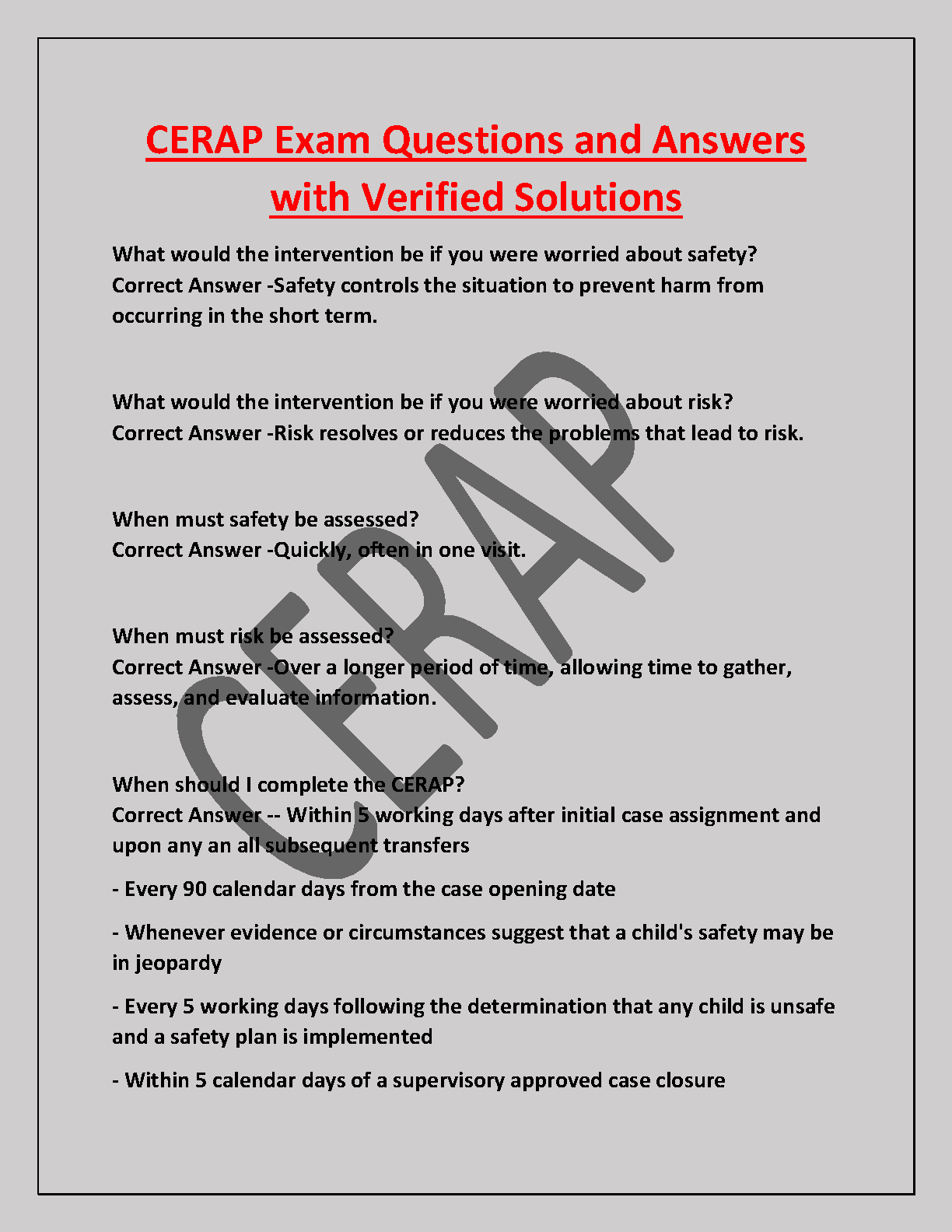 CERAP Exam Questions and Answers with Verified Solutions: A Comprehensive Guide to Passing Your Exam on the First Attempt