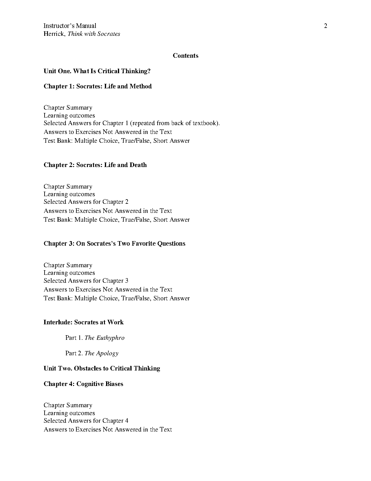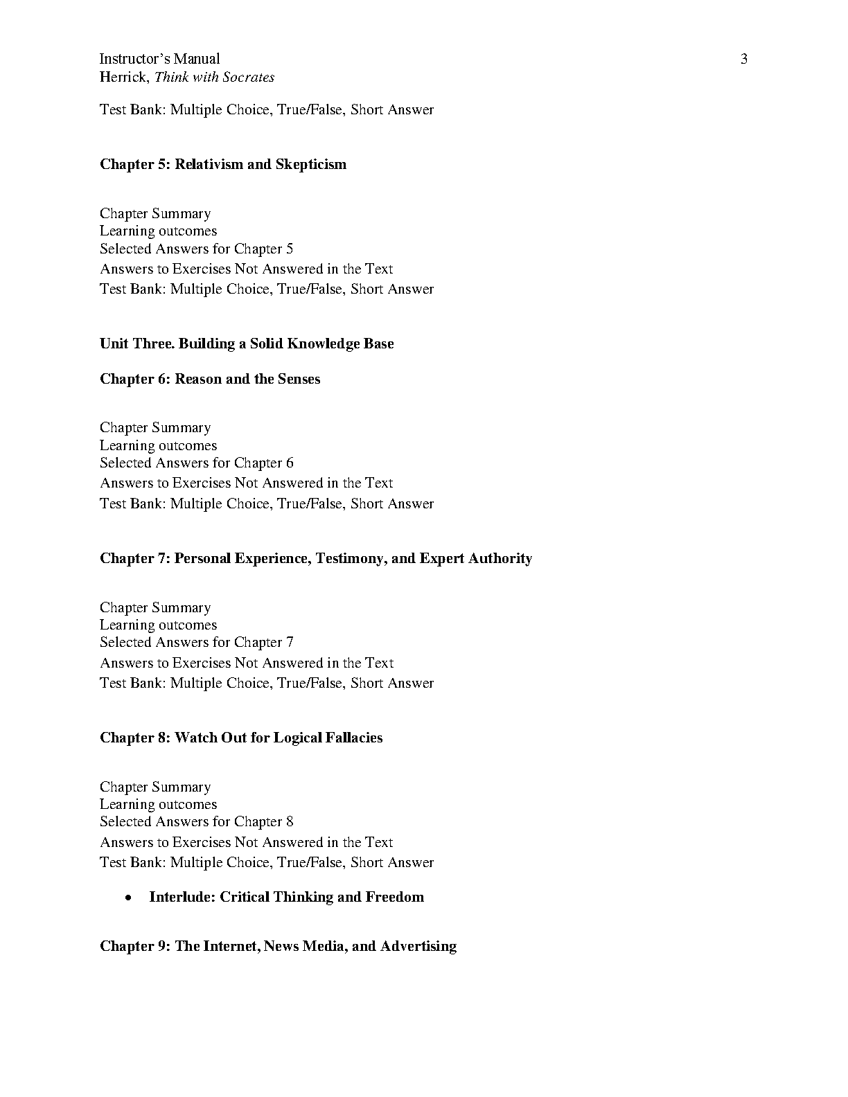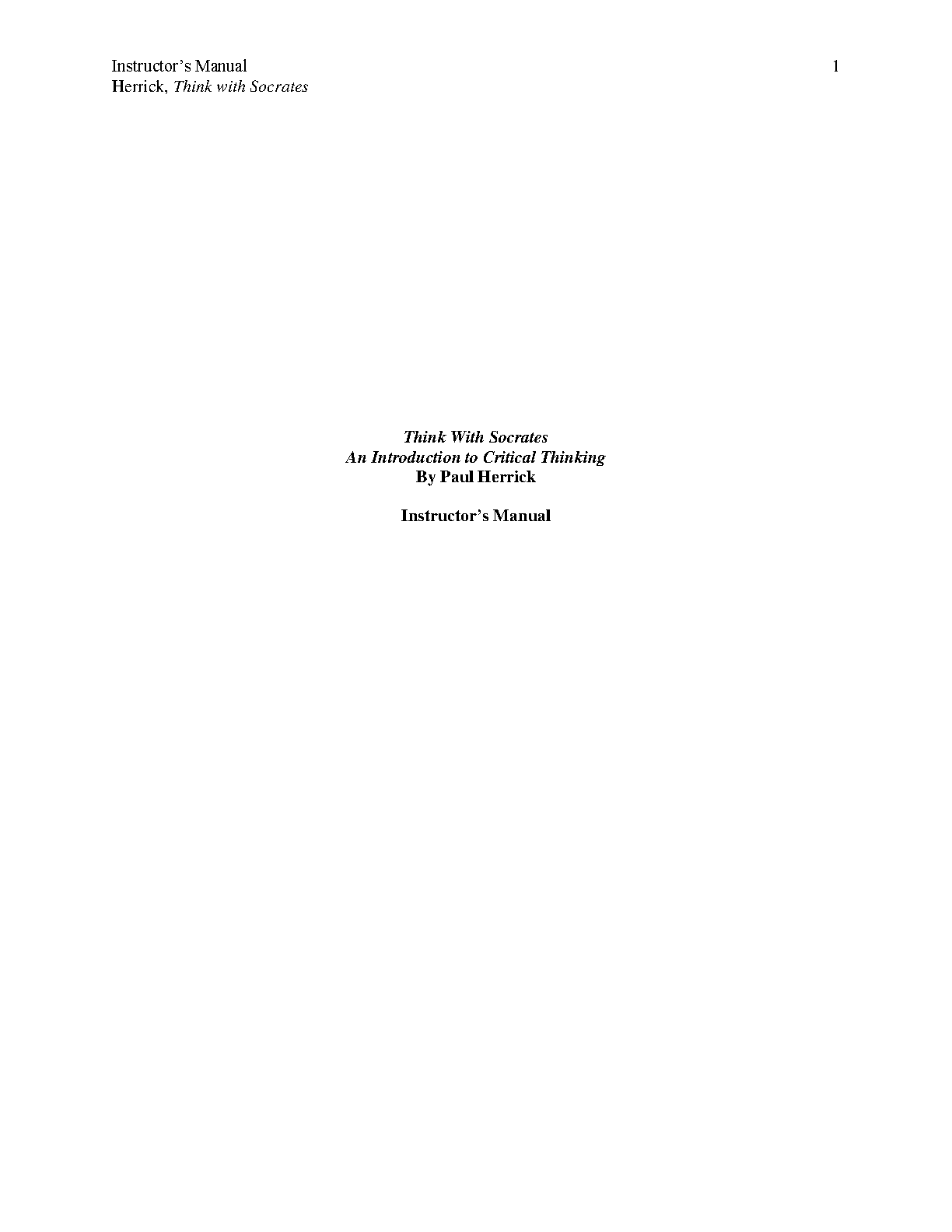 Think With Socrates: An Introduction to Critical Thinking, 7th Edition by Paul Herrick - Instructor's Manual