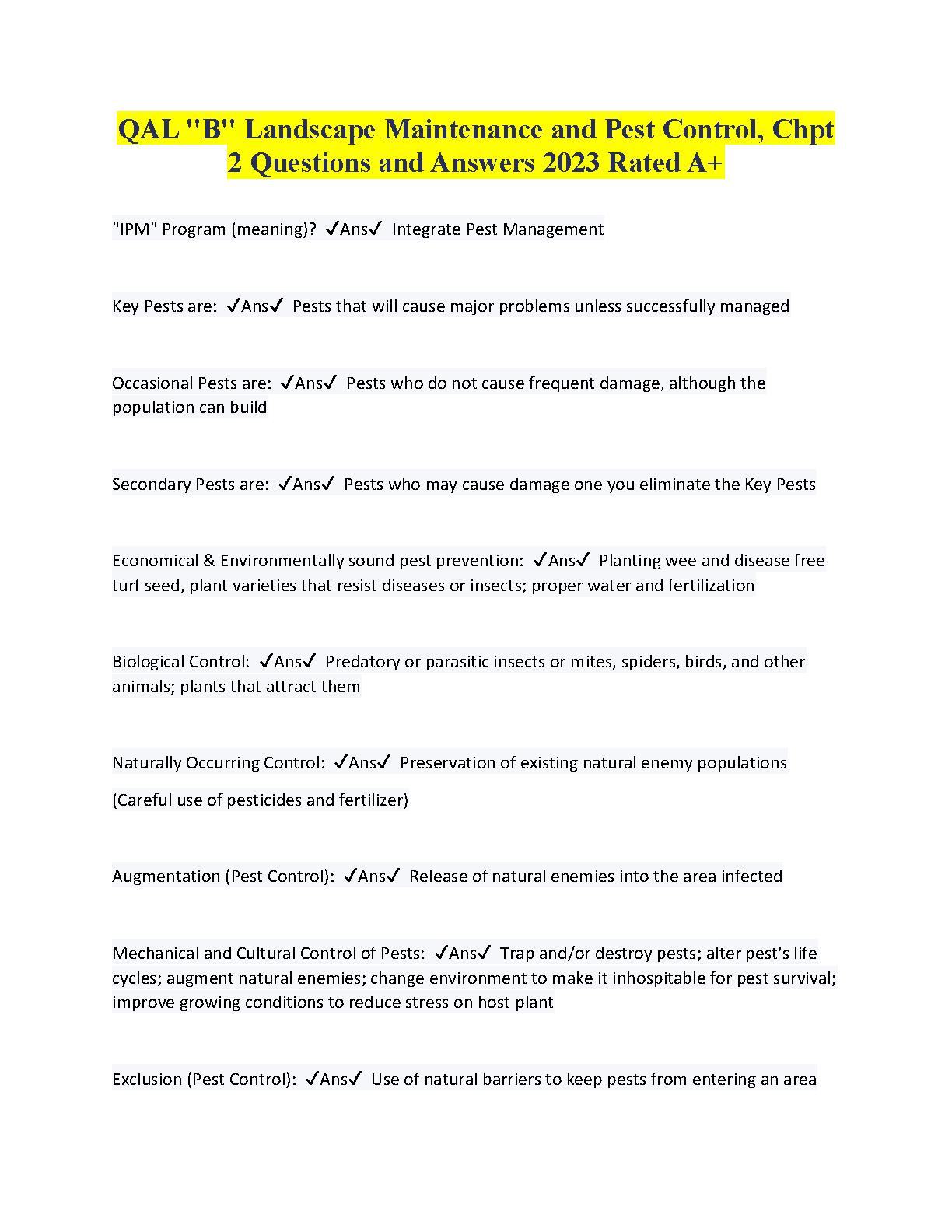 Comprehensive study guide for Landscape Maintenance and Pest Control, featuring questions and answers from the 2023 edition. This resource is designed to help students ace their exams and avoid resits.