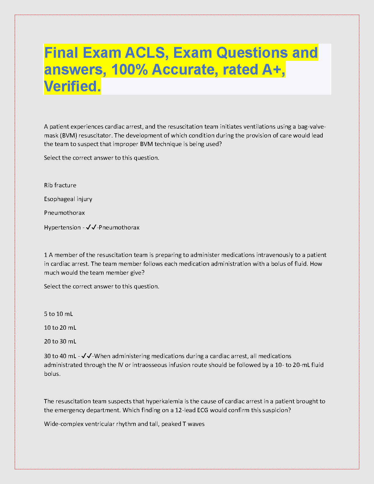 ACLS Exam Questions and Answers: 100% Accurate, Rated A+, Verified - 2024-2025 Edition by [Author name]