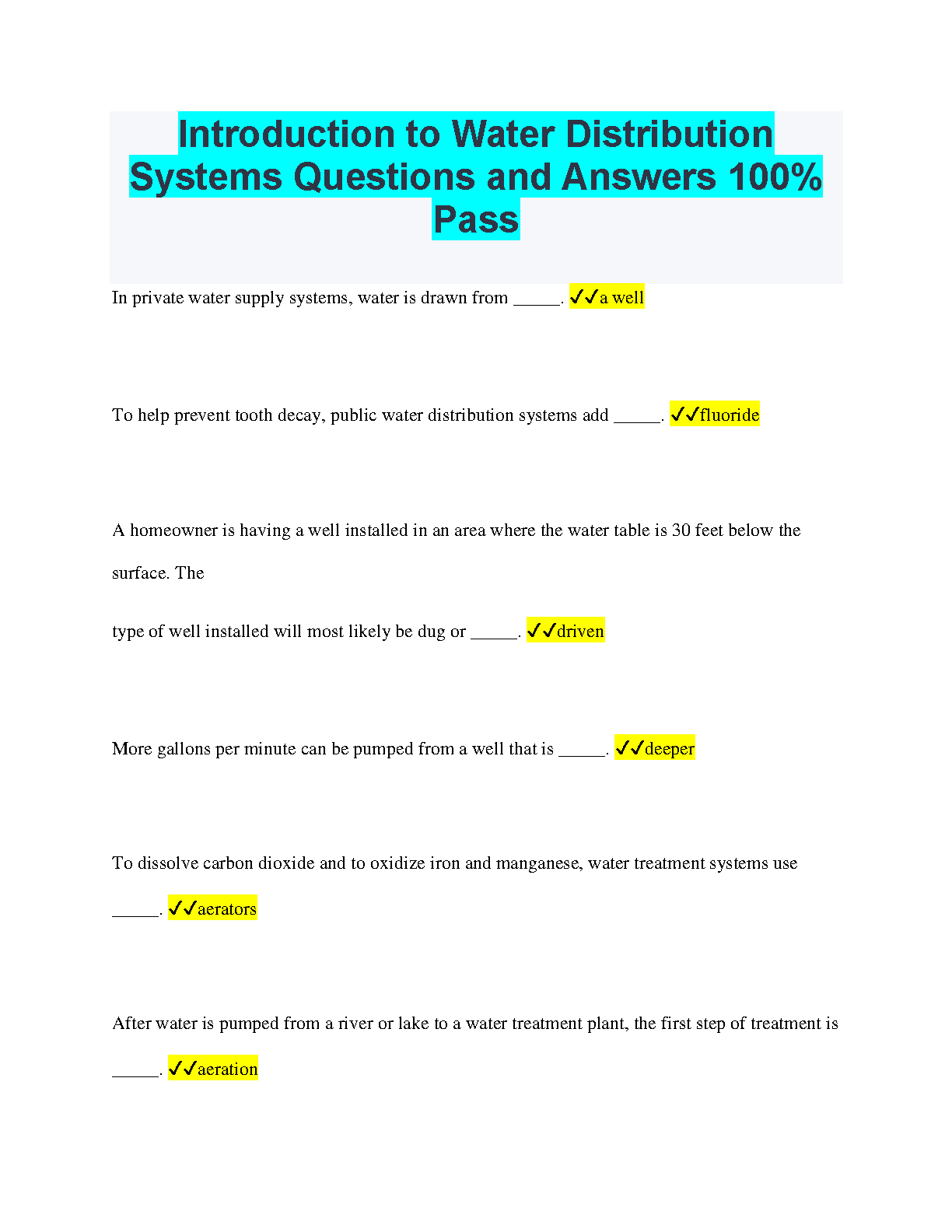 Ace your exams on the first attempt and avoid resits with this comprehensive study guide. This resource is designed to help you master the fundamentals of water distribution systems. It includes 100% pass questions and answers, covering key concepts and important details. Prepare effectively and confidently, and achieve your academic goals with this invaluable resource.