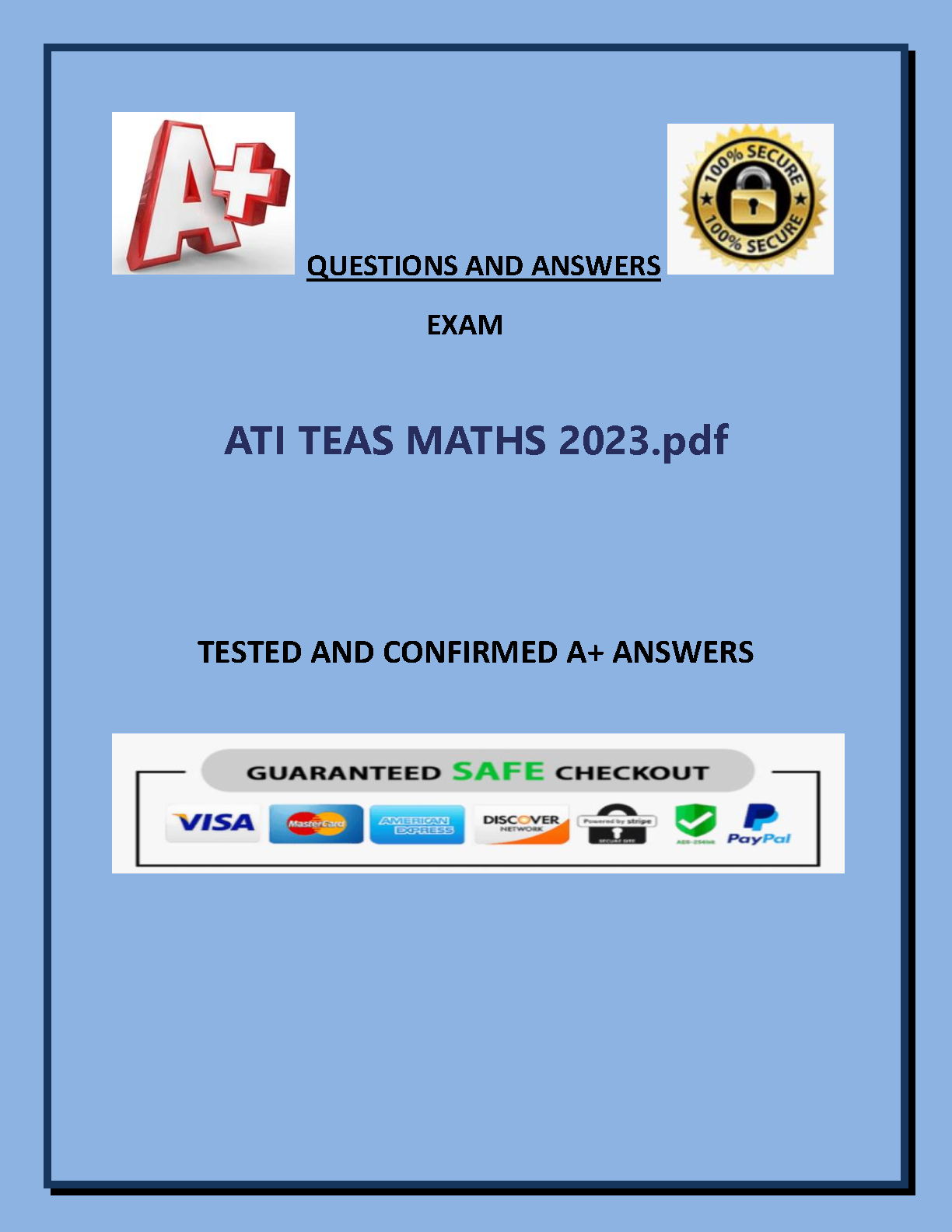 Download the ATI TEAS Math 2023 Edition Exam Questions and Answers - get ready to ace your test! This comprehensive study guide includes a curated set of questions and answers designed to help you master the crucial math concepts and improve your score. Confidence & Success Guaranteed!