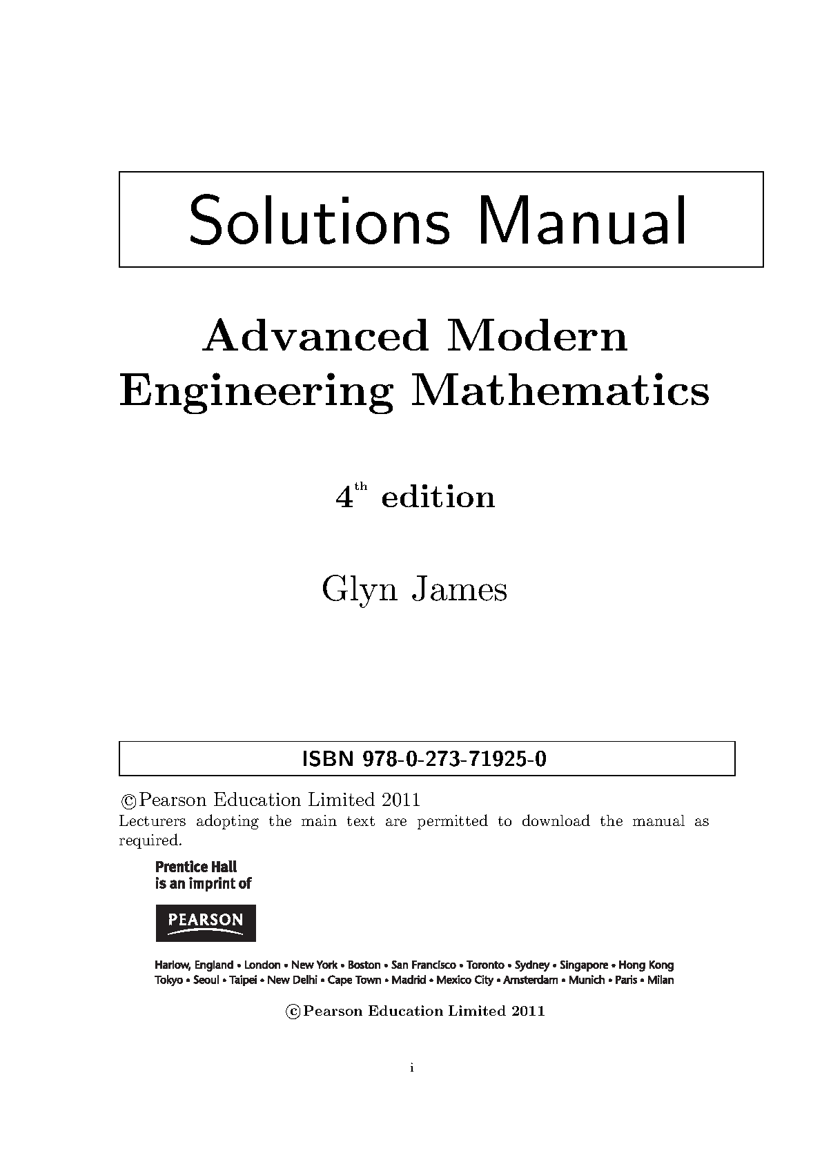 Advanced Modern Engineering Mathematics 4th Edition Solutions Manual by Glyn James