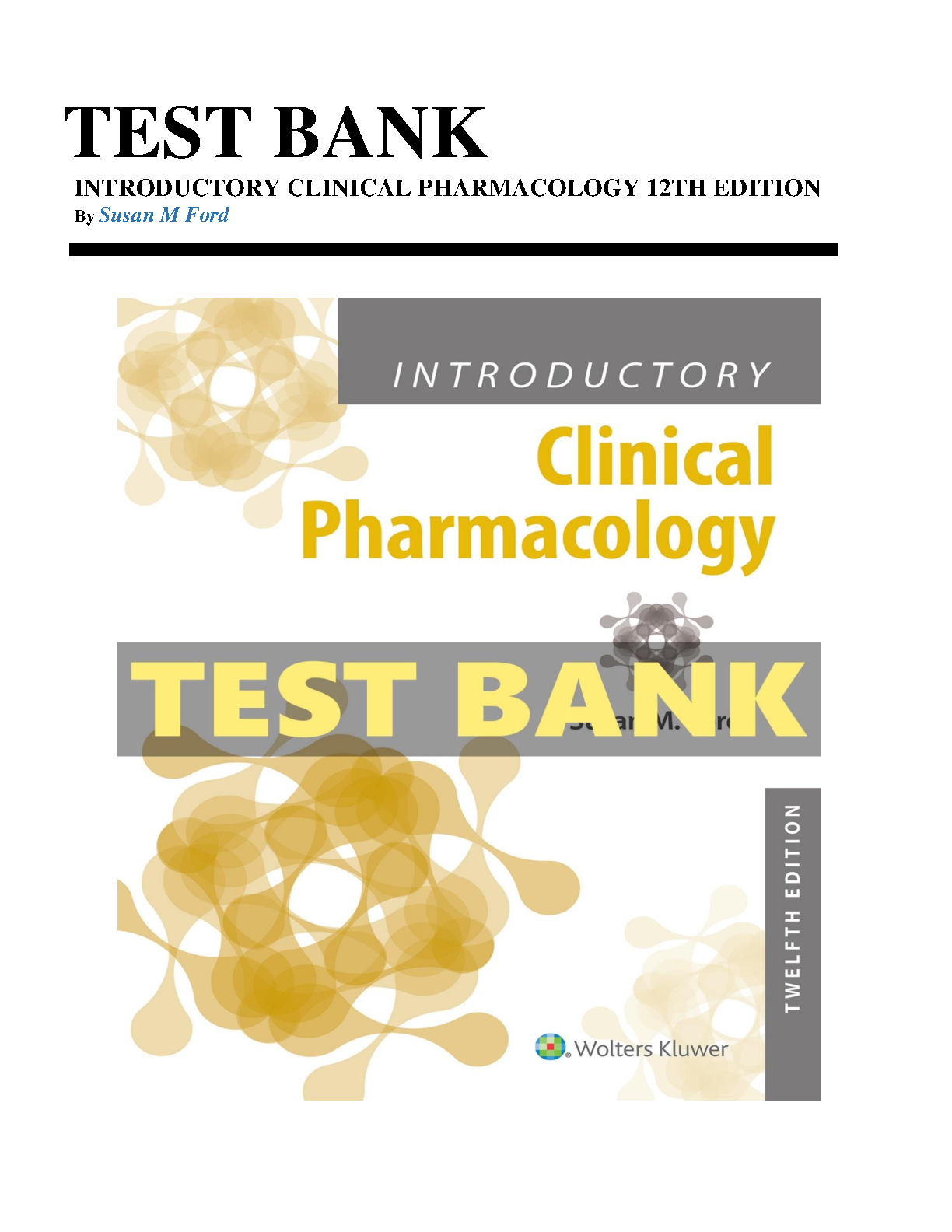 Introductory Clinical Pharmacology 12th Edition Test Bank by Susan M Ford