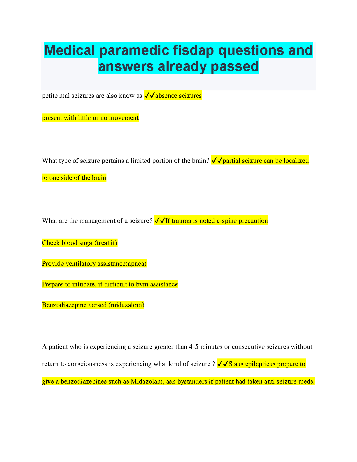 EMT FISDAP Questions and Answers: Pass Your Exam on the First Attempt (Latest 2024-2025 Edition)