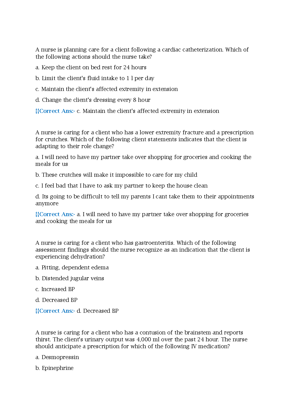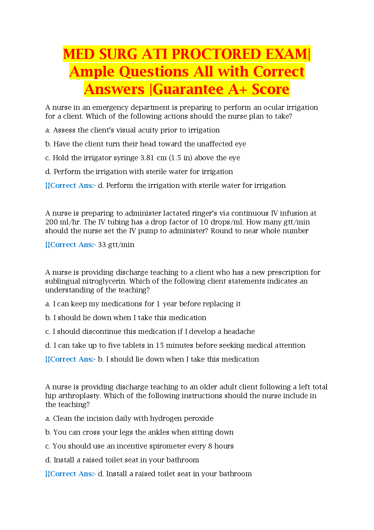 MED SURG ATI PROCTORED EXAM| Ample Questions All with Correct Answers |Guarantee A Score