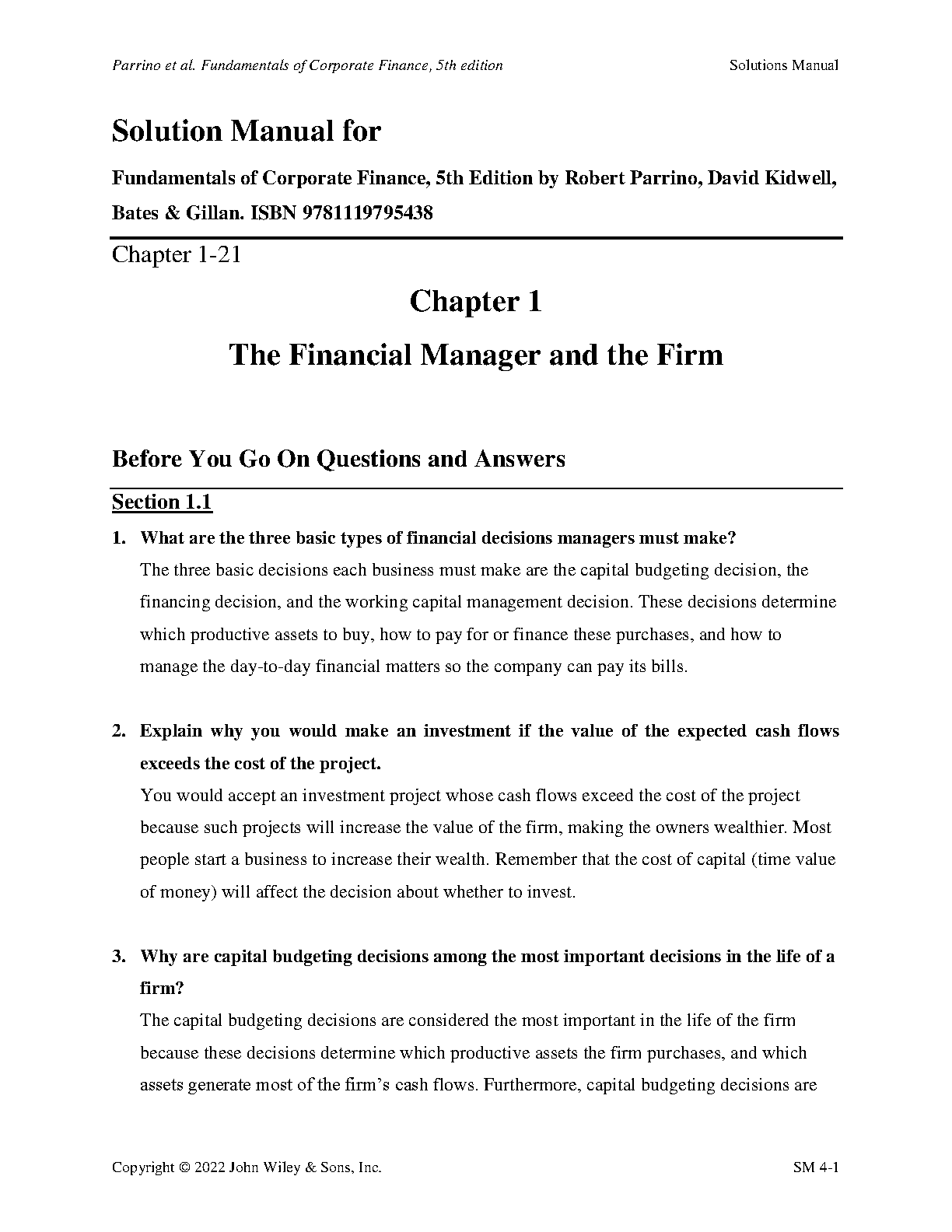 Solution Manual for Fundamentals of Corporate Finance, 5th Edition by Robert Parrino, David Kidwell, Bates & Gillan