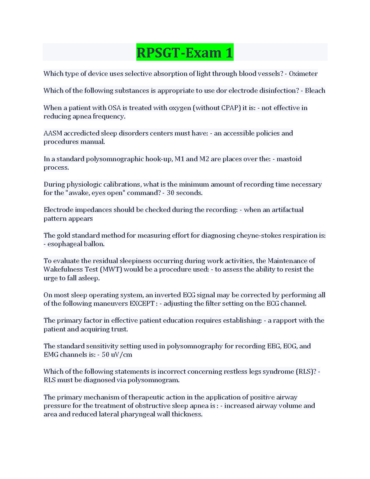 RPSGT Exam 1 Practice Questions for 2024/2025 - Ace Your Exam on the First Attempt
