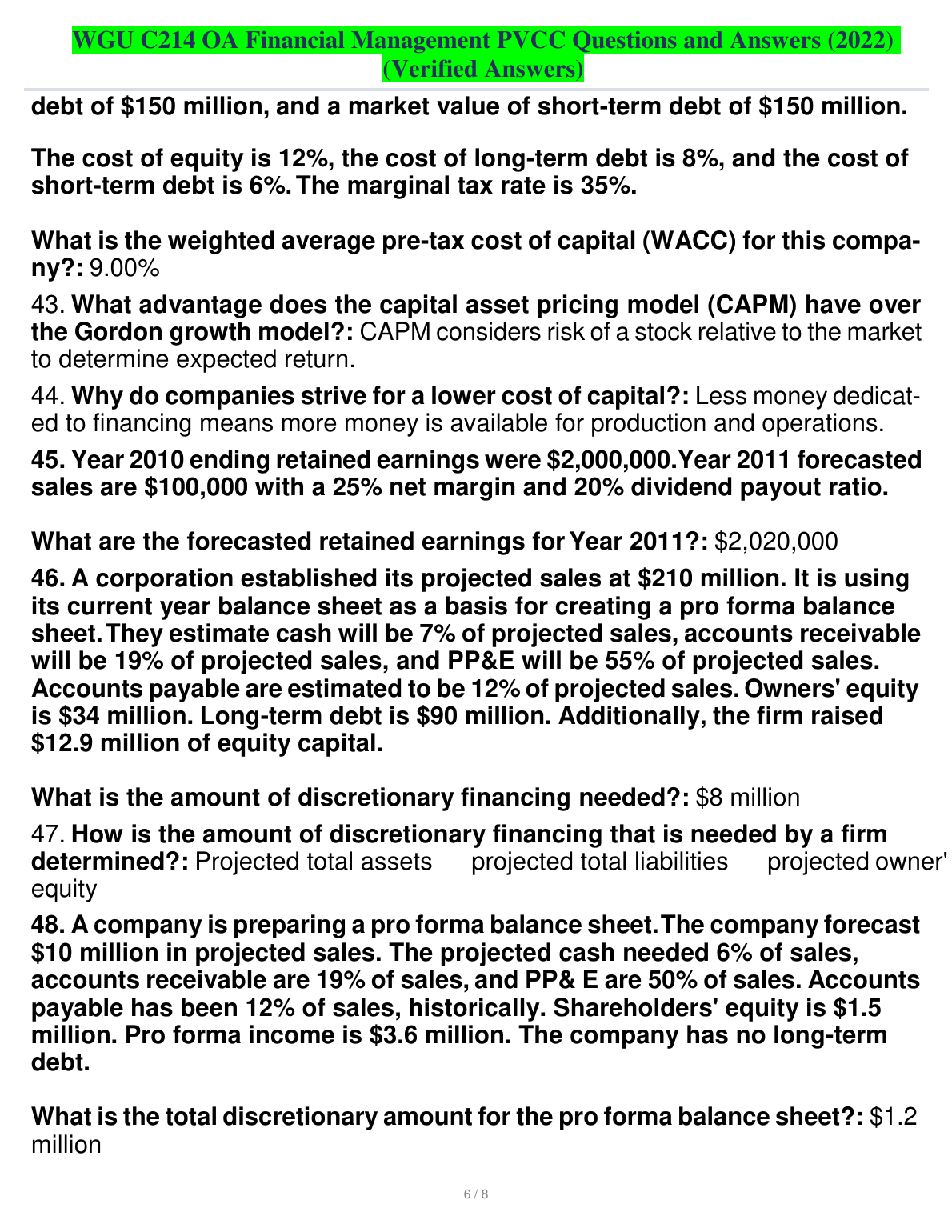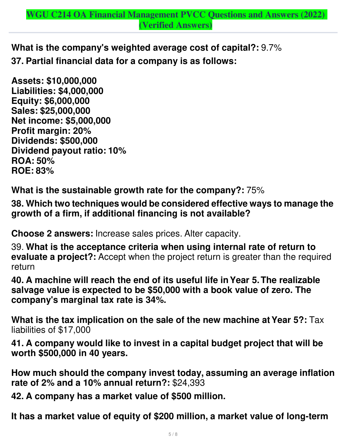 WGU C214 OA Financial Management PVCC Questions and Answers (2022/2023) (Verified Answers). DOWNLOAD on www.hackedexams.com INSTANTLY.