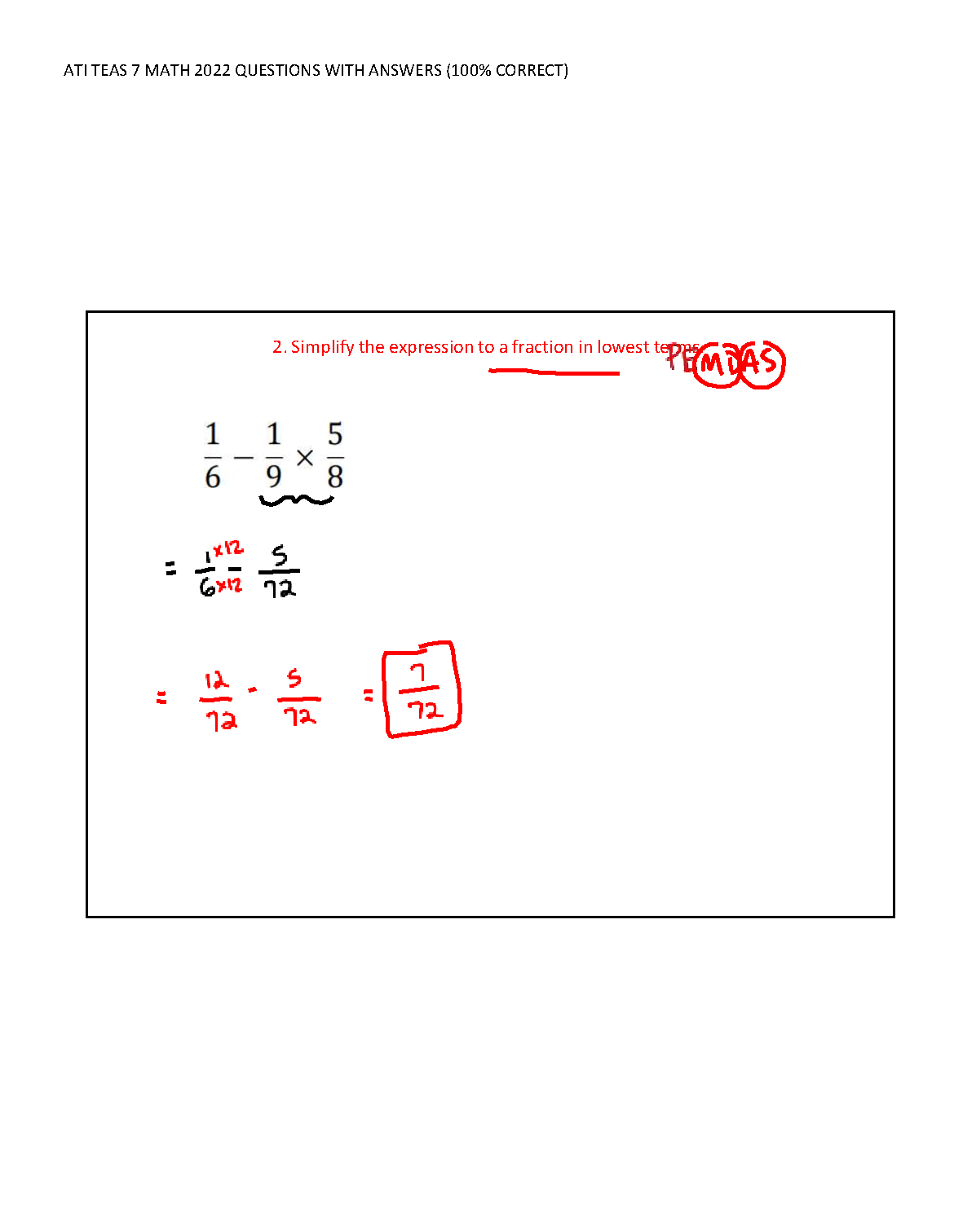 ATI TEAS 7 Math 2022 Questions with Answers (100% Correct) - Ace Your Exam with This Comprehensive Guide!