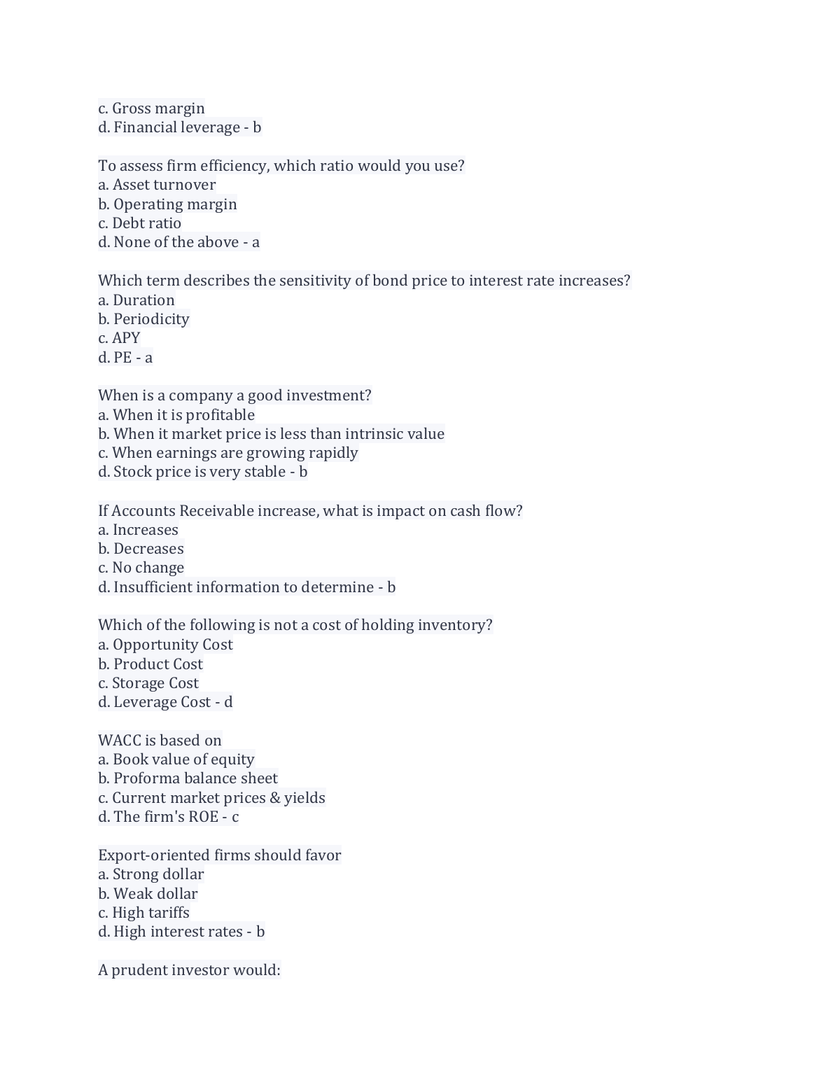 WGU C214 OA Financial Management Exam Questions and Answers (2022/2023) $18.00 WGU C214 OA Financial Management Retake Exam Questions and Answers 2023 $16.00 WGU C214 Financial Management OA Study Set UPDATED 2023/2024 $16.00 WGU C214 Finance Management PVCC 2021 Latest Exam WITH ANSWERS UPDATED VERSION 2023 $16.00 WGU C214 OA Q&A Checklist FOR 2023/2024 BRAND NEW!! $16.00 WGU C214 Final Exam Questions and Answers Graded A+ $16.00 WGU C214 FINANCIAL MANAGEMENT PASS THE OA| QUESTIONS WITH CORRECT ANSWERS BRAND NEW 2023!!! $16.00 WGU C214 OA Financial Management Pre-Test Exam Questions and Answers (Verified Answers) 2023/2024 $16.00 WGU C214 OA Financial Management Retake Exam WITH UPDATED ANSWERS 2023 $16.00 1,2,3,WGU C214 Concepts Only Multi Choice Version WITH CORRECT ANSWERS GRADED A+ 2023 $16.00 WGU C214 OA QUESTIONS AND ANSWER CHECKLIST ALL CORRECT 2023 $16.00 WGU C214 Financial Management Concepts Practice Exam WITH CORRECT ANSWERS GRADED A+ $16.00 WGU C214 Topic 1 Quick Check Questions/Answers Complete Solution BEST RATED GUARANTEED 100% SCORE $16.00 WGU C214 Practice Test, Questions with accurate answers, 100% Accurate, graded A+ $16.00 WGU C214 EXAM QUESTIONS AND CORRECT ANSWERS 2023 $16.00 WGU C214 OA Financial Management PVCC Questions and Answers (2022/2023) (Verified Answers) $16.00 WGU C214 Finance (Ch 1-15) Questions and Answers Already Passed GRADED A+ $16.00 WGU C214 Financial Mgmt Pass the OA Questions and Answers 100% Correct 2023 $16.00 WGU C214 OA Financial Management Exam Questions and Answers (2022/2023) (Verified Answers) $16.00 WGU C214 OA Financial Management Pre-Test Exam Questions and Answers UPDATED 2023 $16.00 WGU C214 Financial Management Concepts Practice Exam WITH CORRECT ANSWERS 2023 $16.00 WGU C214 Financial Management End of Section Questions and Answers Graded A+ 2023/2024 $16.00 WGU C214 Study Guide Questions and Answers GRADED A+ 2023 $16.00
